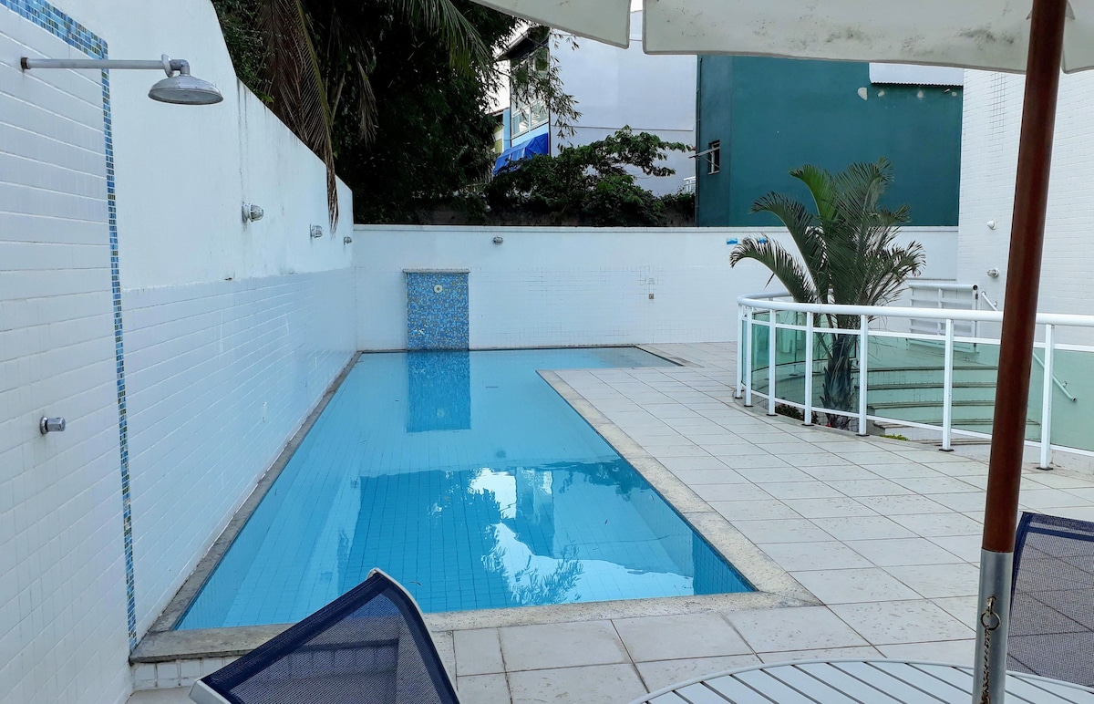 9⁰ andar, 100 m da praia e privilegiada vista para o mar e pontos turísticos: Cristo Redentor, Pão de Açúcar e um belo pôr do sol, a partir da varanda do flat! Arejado, limpo, equipado, ótima localização para lazer seguro, com praias e piscinas! Ideal para "home office" com vista extraordinária e todas as comodidades oferecidas pelo apart hotel! Restaurante com serviço de quarto, espaços "fitness" e infantil, lavanderia e estacionamento. Orla com quiosques e calçadão para passeios e caminhadas!
