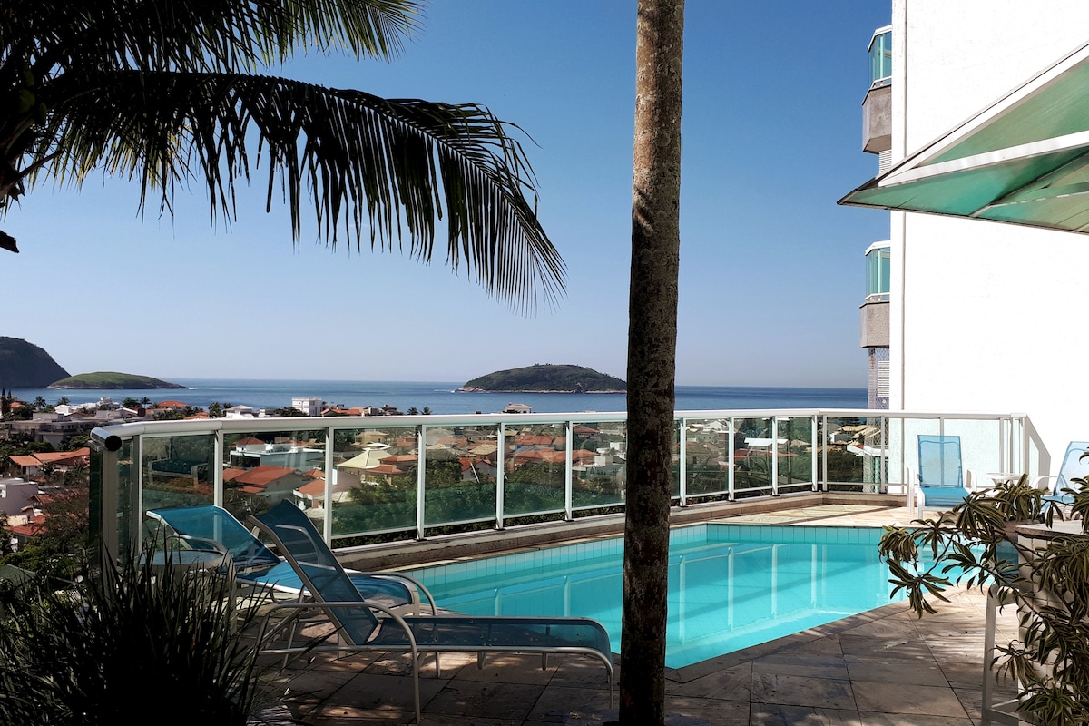 Excellent location at the best neighborhood of Niterói, close to Supermarkets, Restaurants, Bakery, 2 minutes walk to Icaraí Beach, among other attractions. Located in a quiet neighborhood, balcony with view of Icaraí Beach and Rio de Janeiro, a comfortable double bed, sofa bed for two people, new space, elegantly decorated, valet parking (free) on site. Suitable for travelers interested in shopping, fine dining, tourism, couples, individual adventures and business travelers.