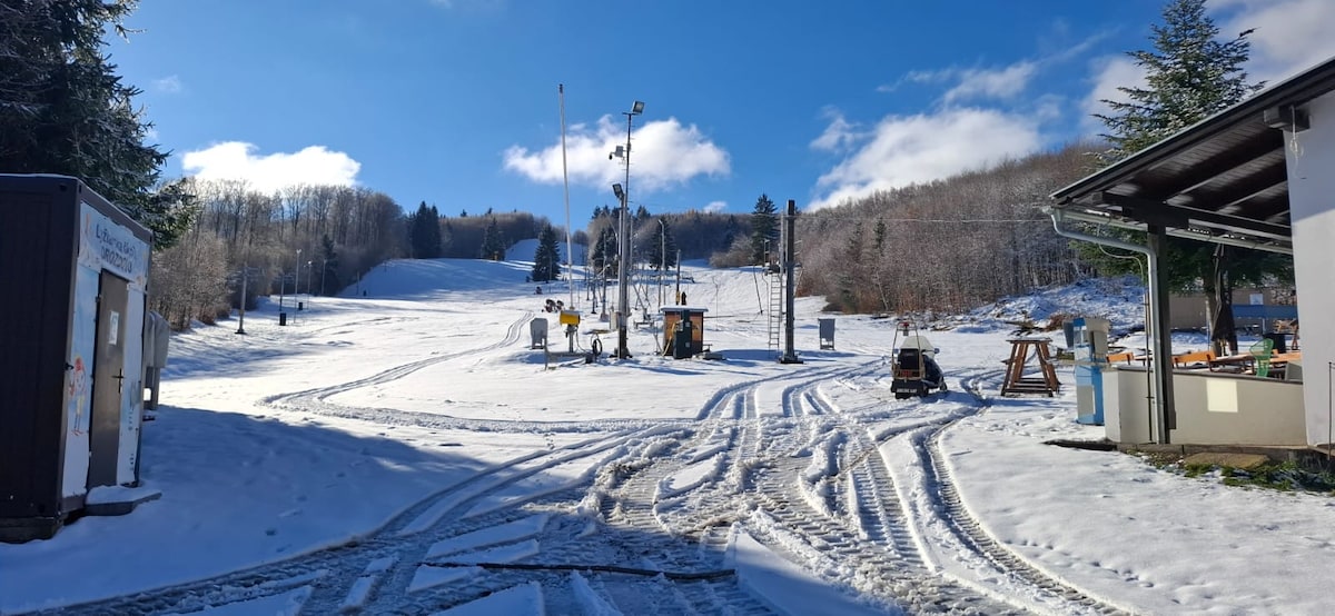 Ideal for groups and families, this listing combines our full apartment, one 4-bed room, and three 3-bed rooms — accommodating up to 16 guests. Enjoy private plus a shared kitchen,living room with flat TV, large living area with billiard and darts, fire pit, and spacious garden with volleyball, basketball, and football areas. Set in peaceful place, about 20 min from Piešťany, The Cabin Retreat offers comfort, privacy, and space for gatherings or retreats in nature.
