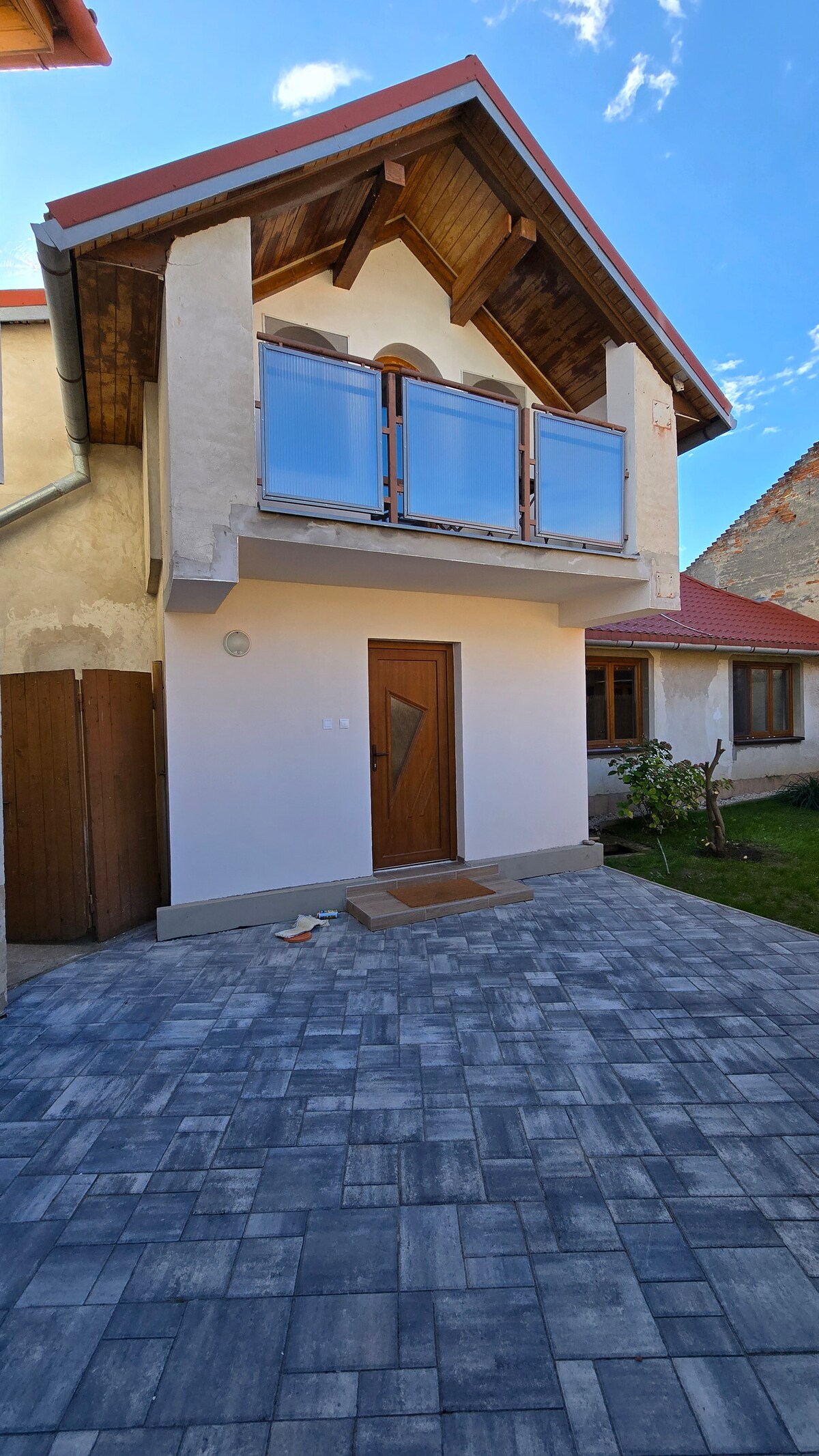 Modern house with a nice view. Eco friendly home which produces its own electricity. The house is situated in the back if our yard, separated by trees and garden from our family house, to maintain your privacy. The shower is only in the main house, but its not a problem to use it... :) We have a nice jacuzzi, which you can use anytime :) Moderny dom s peknym vyhladom situovany na konci zahrady. Ekologicky, produkujeme vlastnu elektriku, zberame dazdovu vodu, ohrev vody solarom.