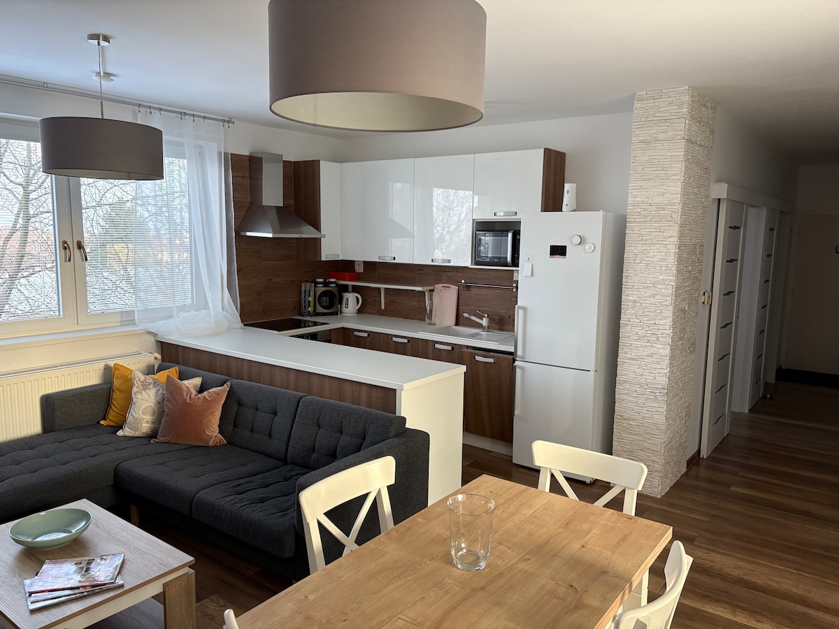 Welcome to a modern apartment designed for comfort and relaxation. This cozy, fully equipped apartment is located near the center of Nitra. Free parking is available in the inner courtyard. The interior stands out with high-standard amenities and a clean, airy design. A pleasant atmosphere and thoughtful details create the perfect space for both work and rest. Whether you're visiting for business, a trip, or with family, you'll find everything you need – in a place that feels like home.