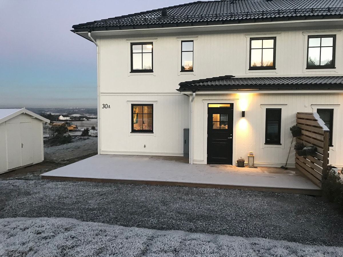 Nytt og fresht hus (del av en tomannsbolig) rett ved skogen med stor hage, fantastisk utsikt og med kort vei til Oslo Lufthavn og Jessheim sentrum. Nytt boligfelt med skiløypa utenfor døra og kort vei til butikker, alpintbakke og forskjellige sport- og kulturtilbud.