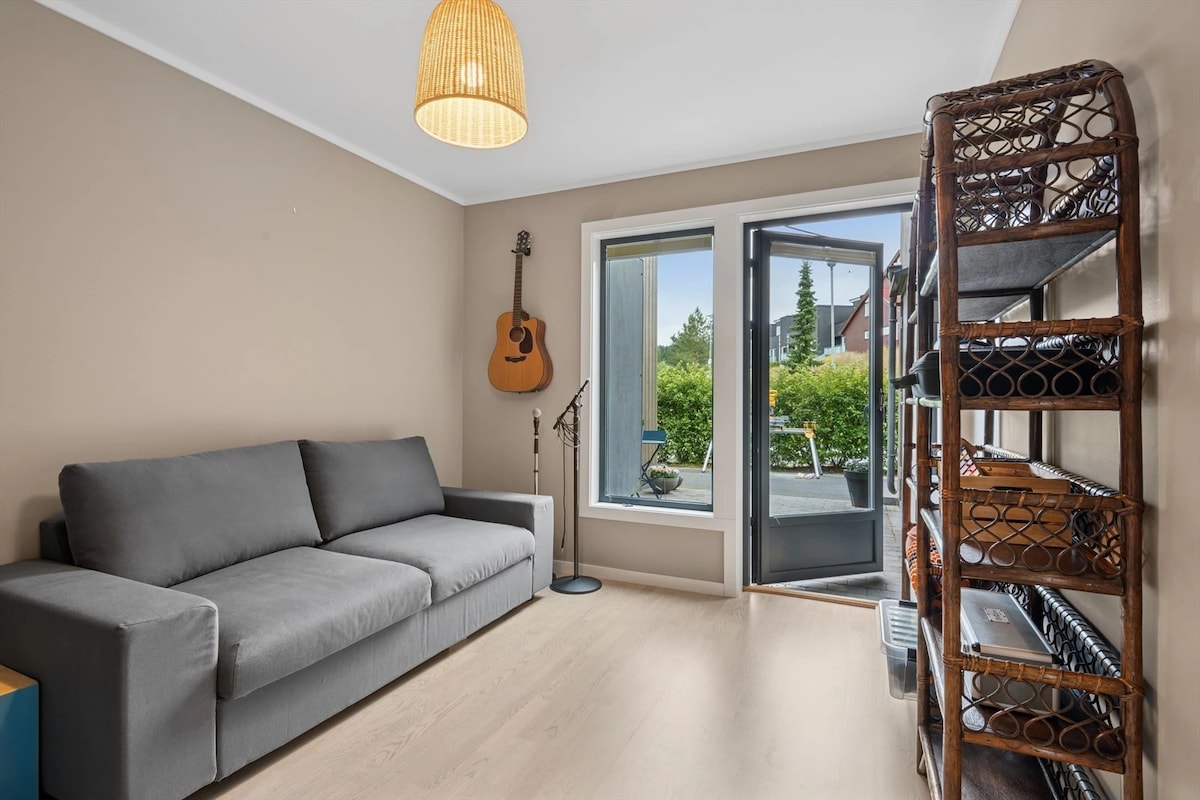 The room is in the basement, with own entrance. It has a sofa, table, work desk, queen-size bed and a single bed. - 30 minutes from Oslo Airport Gardermoen (shuttlebus) - 25 minute from Oslo. 15 min walk to bus stop. High-Speed internet, Platystation 4, Netflix and YouTube. Refrigerator, water cooker, microwave oven and your own toilet with shower. Included is also cofee, tea, blankets, pillows, towels, 2 rolls of toilet paper, shampoo, soap and access to shared room with washing machine.
