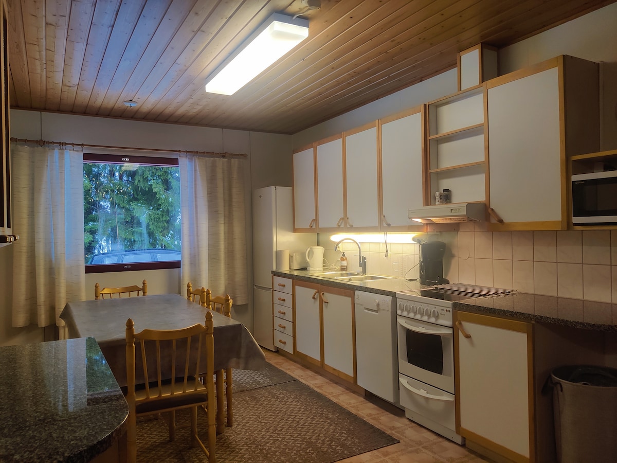 A cottage with loft accommodation, completed in 2020, in the peace of the countryside in a child-friendly yard. Breakfast 10e/person. 5/child. Ask. It's easy to come and spend the night, even with children. The beds are already made. The large yard provides opportunities for many things to do and play. Bunnies and chickens in the yard. The cabin is located in the same yard as the host family. Gasgrill on the terrace. Cafekiosk on random days. Large hot tub 99e, only pre-filled, heated.