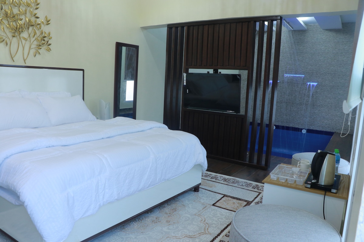 Enjoy comfort and privacy. Misfat al-Abriyeen The spacious interior features a spacious living room, a master bedroom, and an elegant coffee corner. Air conditioning ensures a refreshing atmosphere, and a bathroom and bathtub provide maximum comfort.