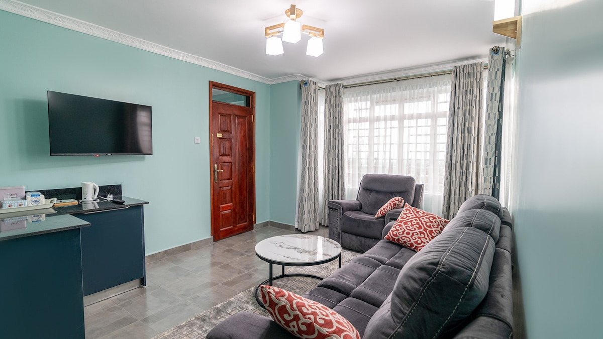 Experience comfort and convenience at Pactstays, located in the heart of Nyahururu. Our designed space offers 1 bedroom, bathroom and a cozy living area with modern amenities. we aim to provide a seamless and memorable stay for both business and leisure travelers. Discover the perfect blend of relaxation. Sleep soundly on our comfortable bed and Stay connected with high-speed Faiba Wi-Fi and enjoy your favorite shows on the flat-screen TV. We provide ample parking and 24-hour security.
