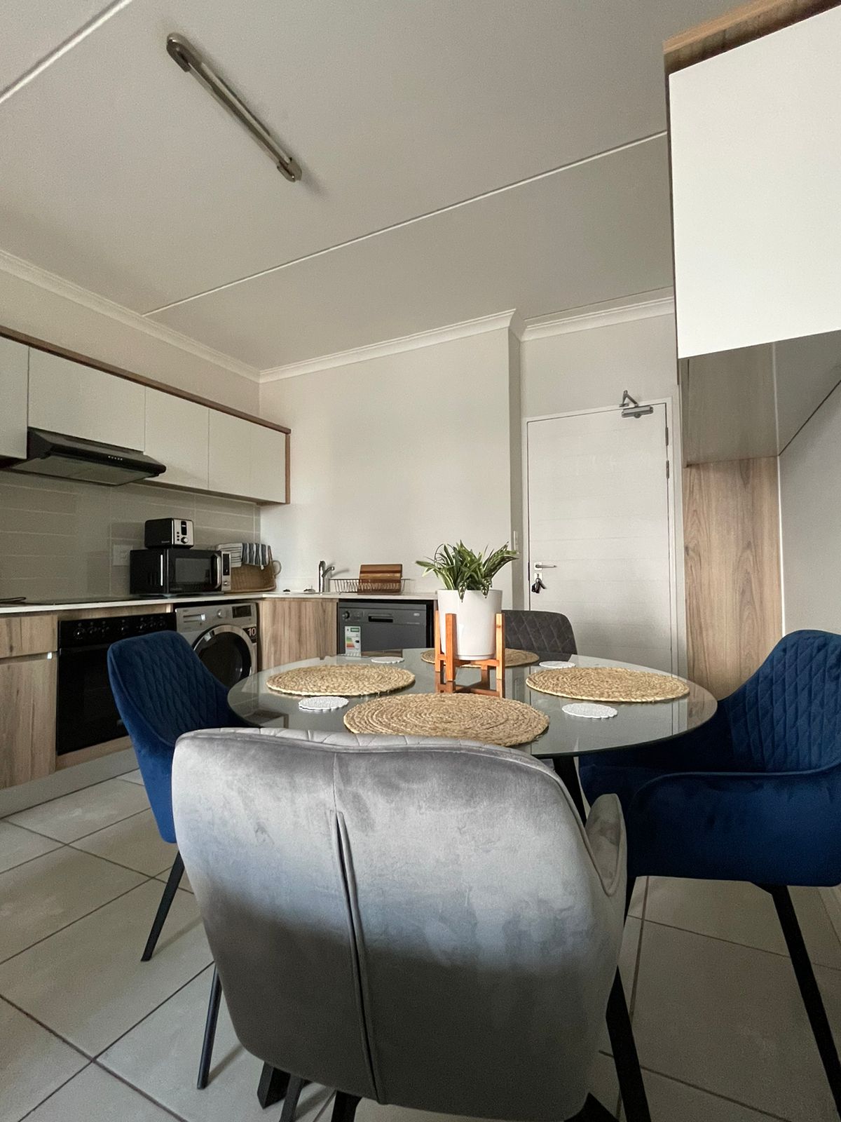 A modern, cosy and classy 2 bedrooms with 2bathrooms fully furnished apartment for 4 people with all essentials provided to make their stay comfortable. The apartment has a Smart Samsung TV with free access to DSTV Compact and uncapped wifi. This self catering apartment has ready to use appliances such as a fridge, microwave, dishwasher, braai stand, washing machine, a kettle and a toaster.