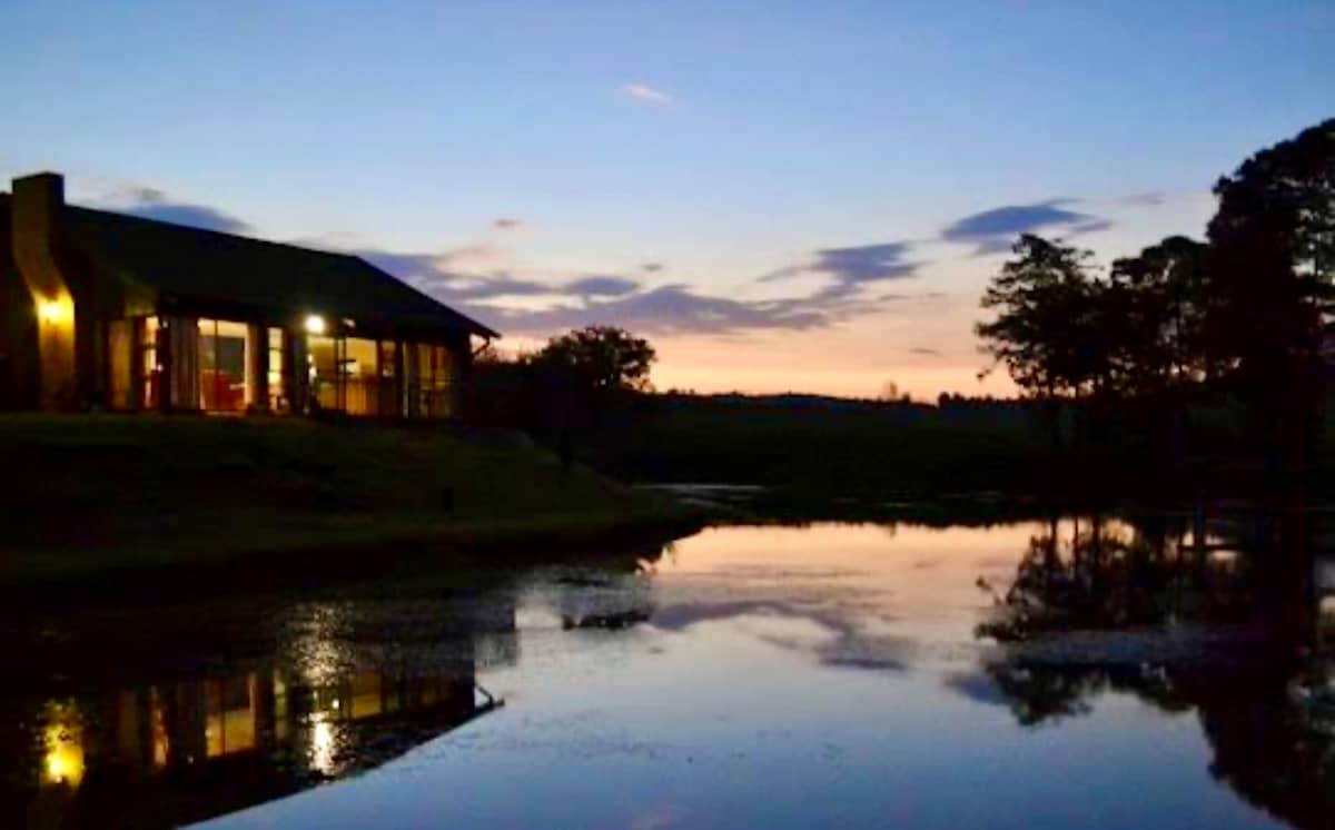 This spacious cottage is set on a working farm just outside of Waterval Boven, offering a serene and peaceful retreat for fishing enthusiasts, nature lovers and those who seek relaxation. It boasts a private trout dam and river with stunning views over the mountains. Ideal for bird watchers and star gazers. Featuring a cozy open plan lounge with fireplace that adds coziness during colder days. Surrounded by the natural beauty of Galil Farm, guests can explore the ancient stone circles.