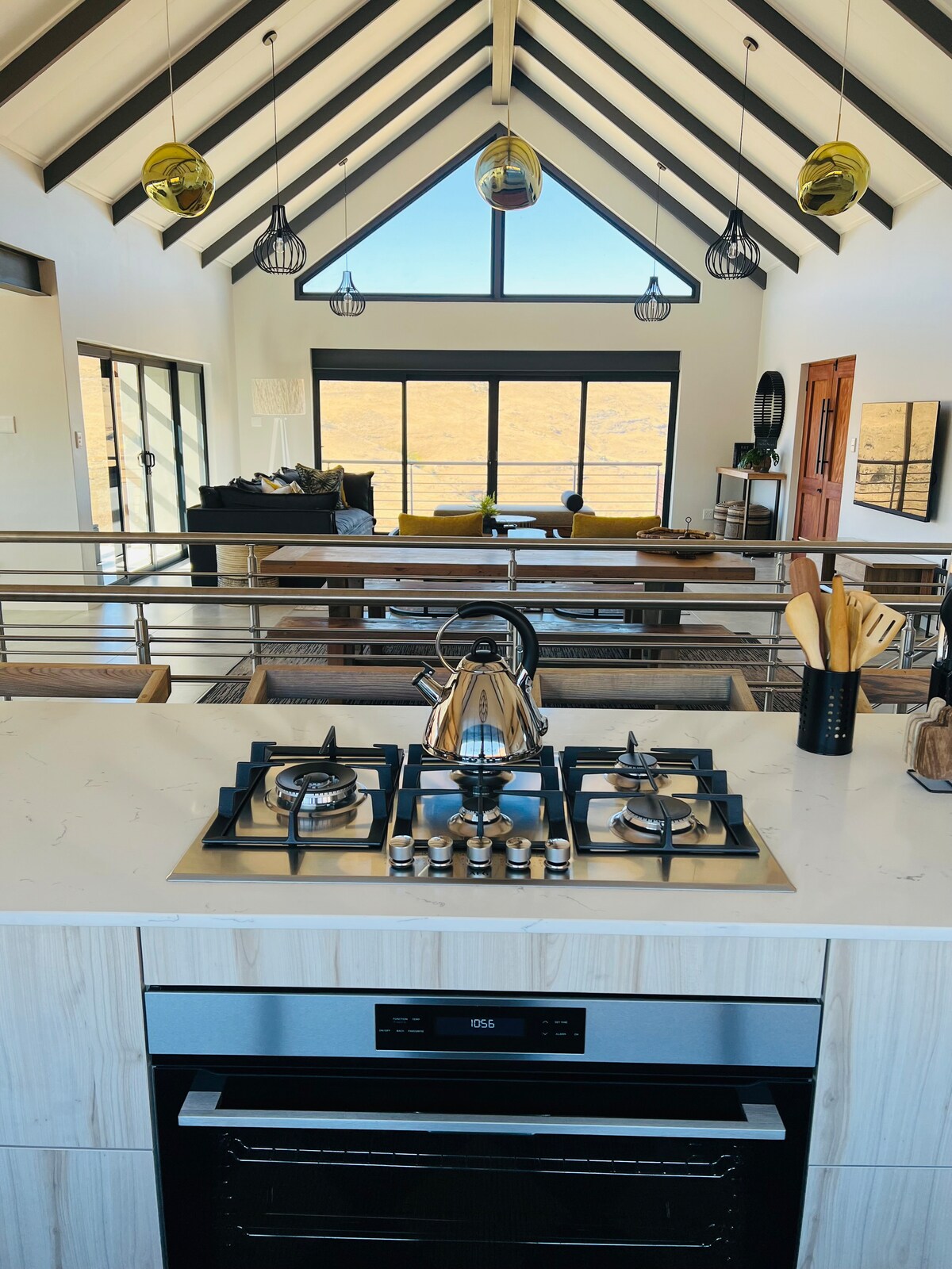 Highland Peace Haven is a spacious 3-bedroom retreat designed for comfort and relaxation. Unwind in extra king-size beds with luxurious Egyptian cotton linen and electric blankets for cosy nights. Enjoy the indoor fireplace, fast Wi-Fi, Netflix, and a reliable backup inverter system. The open-plan living area flows onto a covered patio with a built-in braai and pizza oven, plus a full-size pool table with a table-tennis top—perfect for family fun and relaxed evenings.
