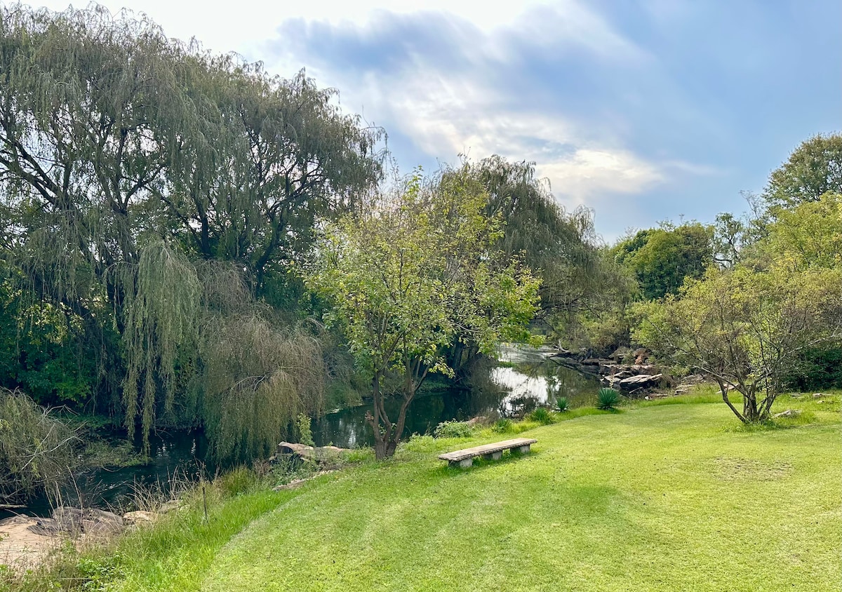 This is a very exclusive private self catering chalet for six guests on the banks of the Crocodile River situated in Schoemanskloof on the N4 Mpumalanga. The chalet sleeps 6, has 1 private bedroom and 2 x bedrooms in an open loft on the top floor. Break away from the city and enjoy a relaxing, quiet and peaceful stay with the sound of running water in front of your chalet.