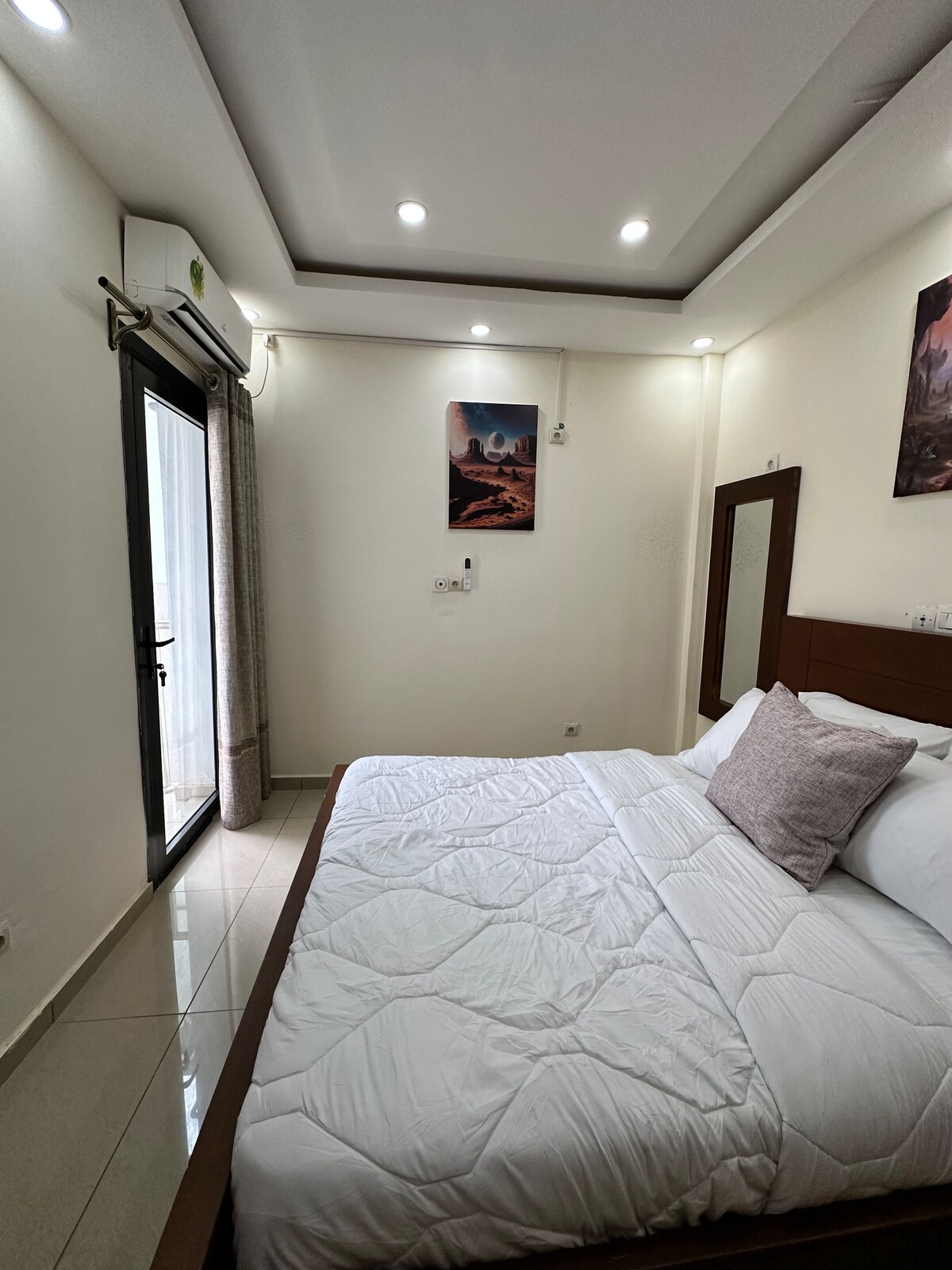 Bring the whole family or large groups to this great place with lots of room for fun. This serviced apartment is tastefully furnished. During your stay, you will have free access to the apartment high speed WiFi (Optical fiber), the crystal clear swimming pool, the fully equipped gym, and to a vast parking for your car. On-site security is 24/7 (Guards+CCTV). The city center is a few kilometers away. Restaurants, supermarkets, ATM, clinics, and pharmacies are available and easily accessible.