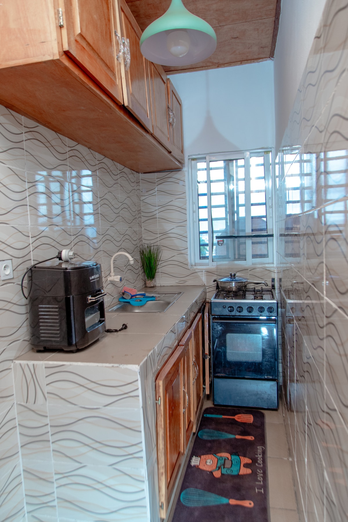 Vous recherchez un logement chic et sécurisé ? Cette charmante villa est là pour vous. A 1 minute de l'axe principal, 10 minutes du centre ville, cette charmante maison avec sa clôture privée, ses 3 chambres et 1 salle de bain italienne élégante, promet confort et style. Profitez d'une connexion internet à hyper haut débit. (meilleur débit dans tout le pays) Pour plus de confort, la maison est équipée d'un chauffe-eau, d'un forage et d'un groupe électrogène pour une total indépendance.