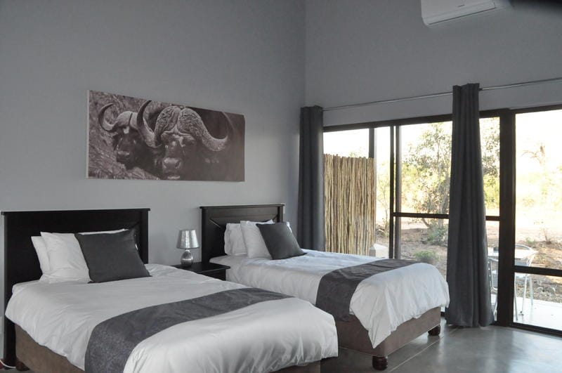 Start your safari from Serenity, A beautiful spacious villa, close to the fence bordering Kruger Park. Directly faces parkland. The animals roam free and visit daily. Fully equipped kitchen. Patio has overhead fans for those hot days. fans in all rooms, air conditioners in both bedrooms, queen sized beds and on suite bathrooms Seated plunge pool, undercover barbeque. The living room, patio bedroom & bathroom wheelchair friendly. Enjoy the African bush at its best 20 minutes to the Kruger park