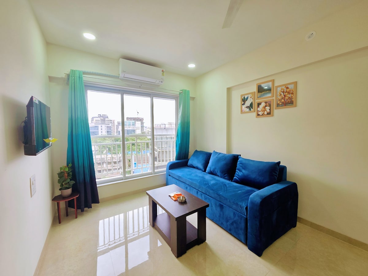 Its high rise tower of 36 story and our apartment is 28. Its a beautiful 2 Bhk apt at high rise tower newly built 2025 with society pool gym library.spacious and peaceful neat and clean place where you wont find Mumbai traffic voices, higher floor view. Note : “Only Indian nationals with valid government ID proof can be hosted, as per society guidelines.” “Just a quick reminder — as per house rules, only guests on the booking are allowed at the property. * Daily flat cleaning required