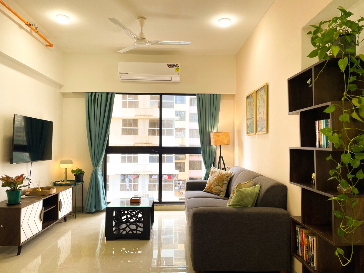 A boho Chic ground floor tastefully curated 2BK retreat in upscale SantaCruz West. We are steps away from FOOD SQUARE, Linking Rd, 10 mins from Santacruz station & close to chic cafés & boutiques. Only 15 mins to the airport & BKC. Ideal for families, couples, or business travelers seeking comfort, style & prime location. Whether you're in town for a work trip, a shopping spree, or just a quiet getaway, this flat offers the comfort of home and the location you need. We can’t wait to host you!