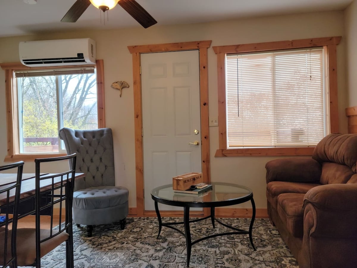 Perfect Location! Under ten minutes to almost everything. Our cozy and romantic getaway is nestled in the scenic Baraboo Bluffs, just minutes to Devil's Lake, Devil's Head Resort, Historic Downtown Baraboo, wineries, distilleries & more. Take the picnic set to Devil's Lake or Parfrey's Glen, then relax on the patio for smores and yard games around the fire pit. Finish the evening snuggled up with wine & vinyl on the player. We have ample parking so bring the boat, we'd love to help you getaway.