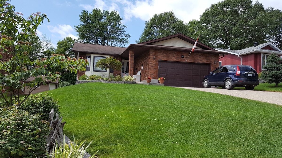 Beautifully renovated, coxy, spacious 3 bedroom apartment in downtown Parry Sound with views of historic Trestle Bridge. Steps to shops, waterfront trail, restaurants, the new Trestle Brewery and Pub, and Legend Distillery. It's walking distance to the hospital. Snowmobile trails on the doorstep. Private parking for two, vehicles. The apartment is located on the second floor of our duplex. Parry Sound is located in a UNESCO Biosphere reserve.