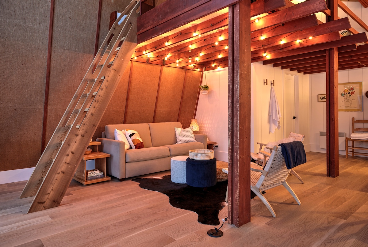 私人谷仓风格阁楼,配有加大双人床