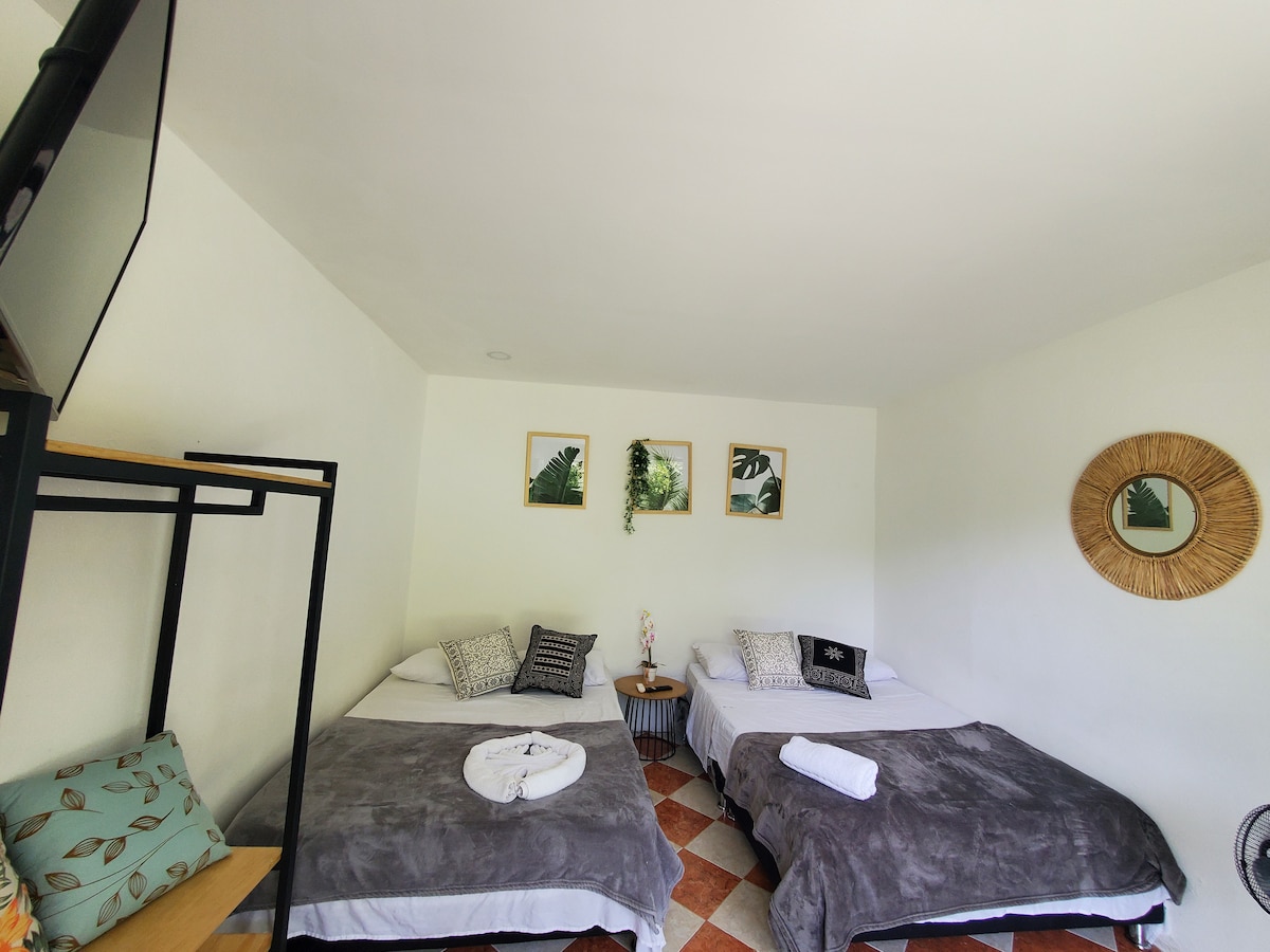 Disfruta de un descanso inolvidable, en el hotel campestre. Habitación ubicada enfrente de la piscina