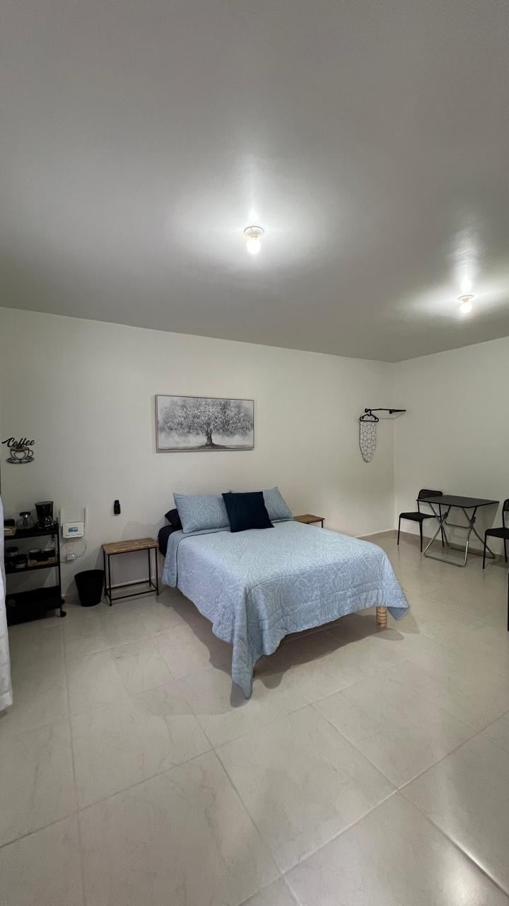 Departamento — Ideal para trámites de visa. En auto, a 3 min del CAS y 15 min del Consulado de EUA (Kalitea). Perfecto si vienes por tus citas de visa. 1 habitación, 1 cama queen size, colchón con memoria de forma, TV de 44" con Netflix, abanicos de techo y ropa de cama de calidad. Sala; 🛋️💤 Dos sofás-cama, uno para cada quien, para 2 huéspedes adicionales, con almohadas, sábanas y cobija incluidas, equipada con TV de 58" y Netflix. 🧼 Incluye: Toallas y productos básicos de higiene.