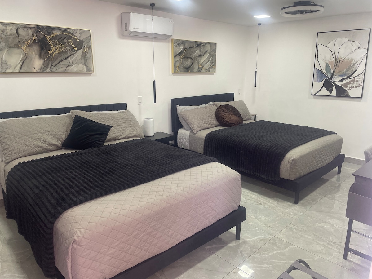 Disfruta de la sencillez de este alojamiento en una zona muy céntrica, tranquila y segura, con caseta de seguridad, portón eléctrico para resguardo de tu vehículo, la casa está equipada para que te sientas como en casa y podemos facturar tu viaje, cerca del consulado americano, de centros comerciales y restaurantes