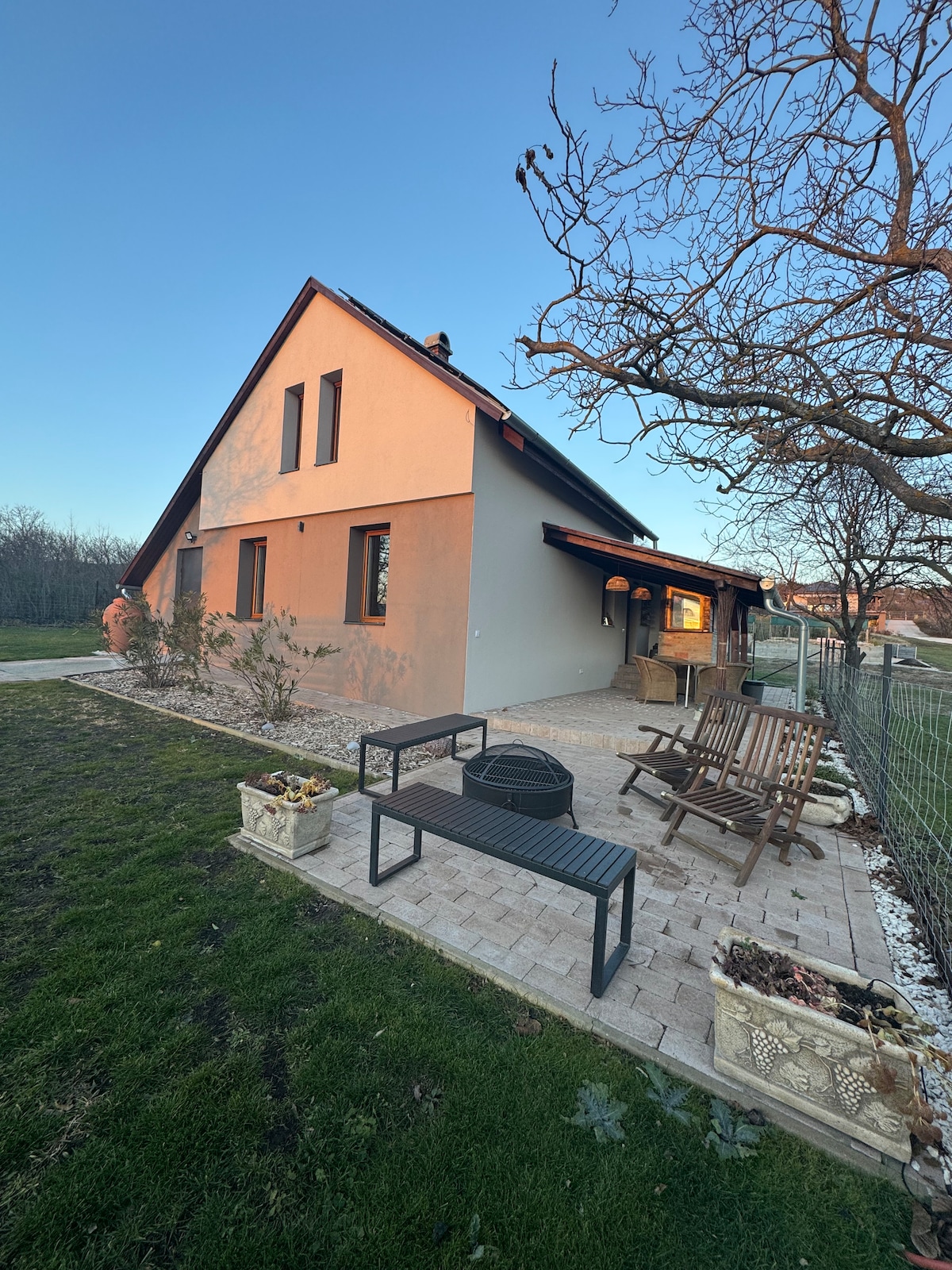 A 110 yrs old granary (renovated to the highest standards) serves as a 300m2 guesthouse. 40min drive from BP, in the Mátra wine-region. 2 spacious apartments host up to 21, with all amenities for a relaxing countryside holiday for families or groups.