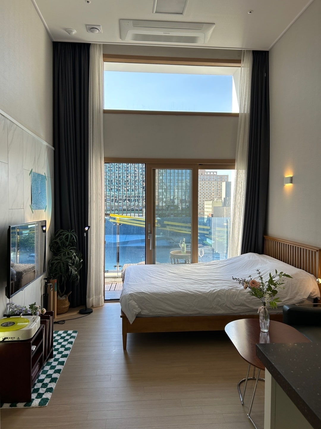 SH【机场1.7公里,5分钟】1张标准双人床的高级公寓,济州岛的中心