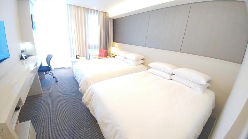 안녕하세요. 저희는 다양한 휴식 공간을 연구하고 제공하는 ONDA입니다. 이 곳에서 머무르실 모든 분들께서 편안하고 행복한 시간을 보내기를 바랍니다. [숙소 소개] 제주 국제공항과 제주 항에서 불과 8분 거리에 위치한 오션스위츠 제주호텔은 아름다운 제주의 바다와 바로 인접해 있으며 제주의 전통문화, 해변공연장을 비롯한 수준 높은 문화시설, 관광과 레저를 손쉽게 이용할 수 있는 편리한 교통의 요지에 위치하고 있습니다. 프레지덴셜 스위트 객실을 포함한 총 350개 객실은 최첨단 IT 서비스가 제공되어 객실 내에서 인터넷 검색을 비롯한 뉴스, 메일확인, 비즈니스 업무수행 등이 가능하여 내 집, 내 사무실에서와 같은 편안함과 편리함을 느끼실 수 있습니다. [객실 유형] 분리형: 침실A(더블1,싱글1)+온돌룸A(요와이불)+화장실1