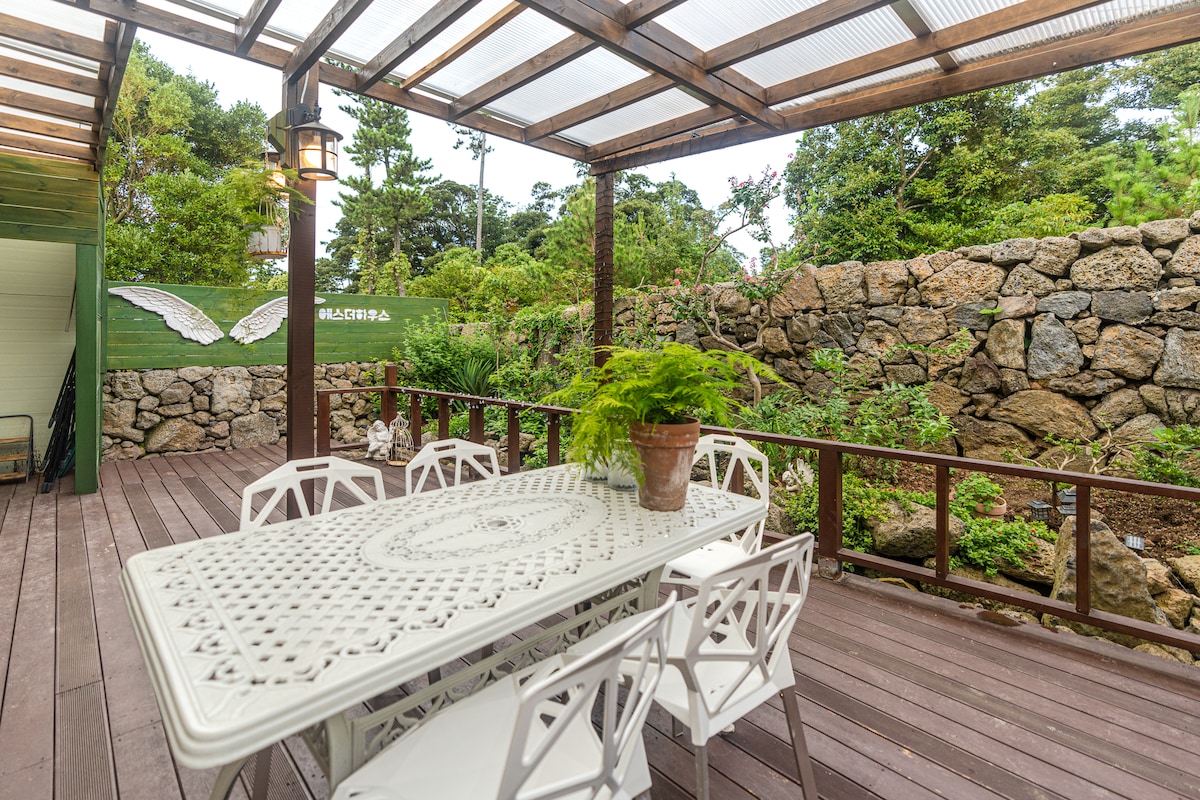 新开业折扣/济州机场附近/免费烧烤/免费热水按摩浴缸。足浴/大家庭住宿/免费烧烤/石墙独栋