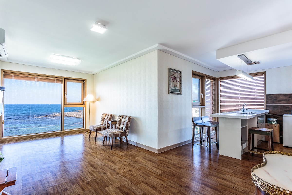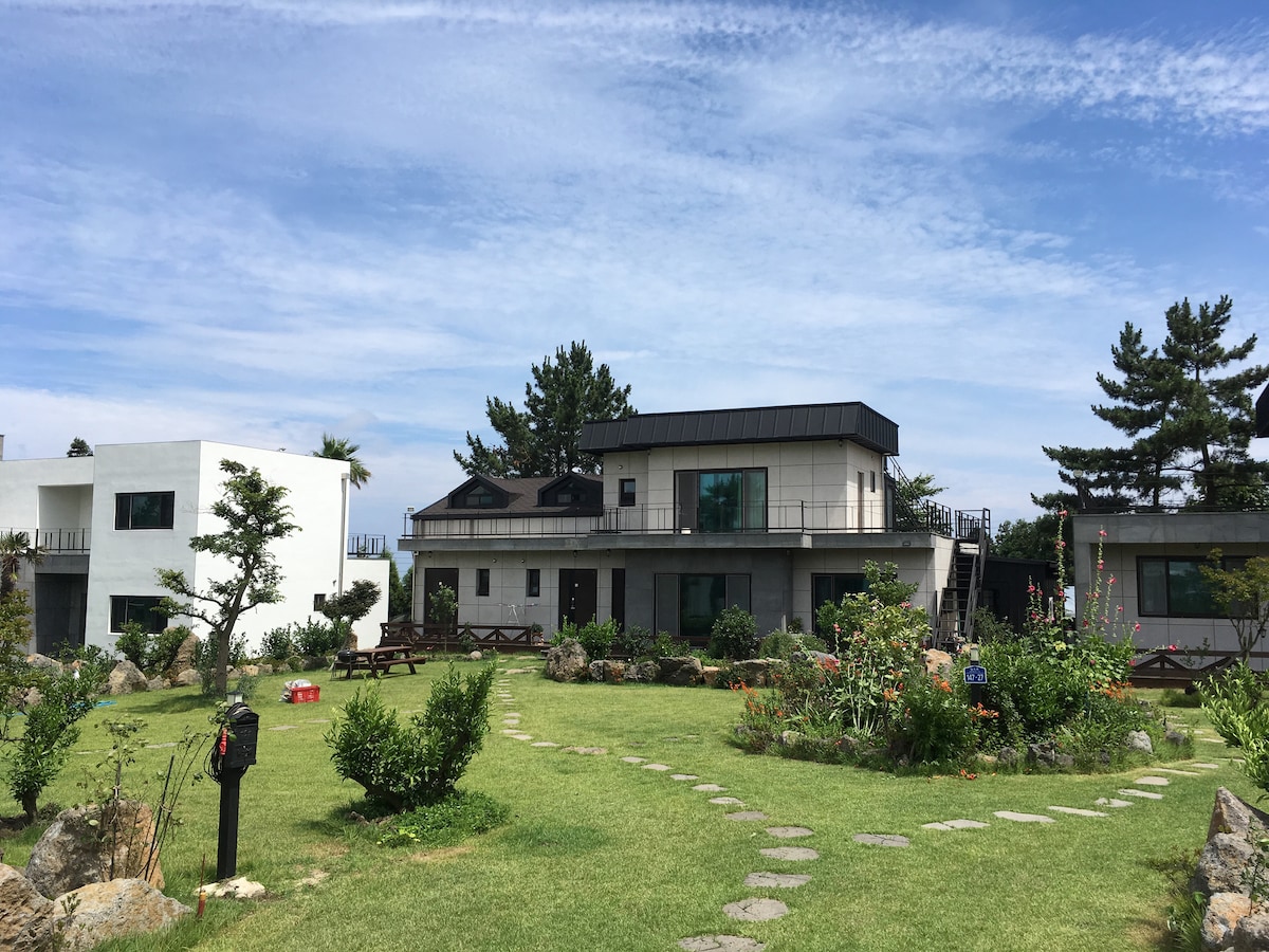 <济州海洋海滩>4 间浴室。位于艾月海滨。距机场 30 分钟车程。64 平米独立房屋,全海景。适合团体、七八口家庭旅行。