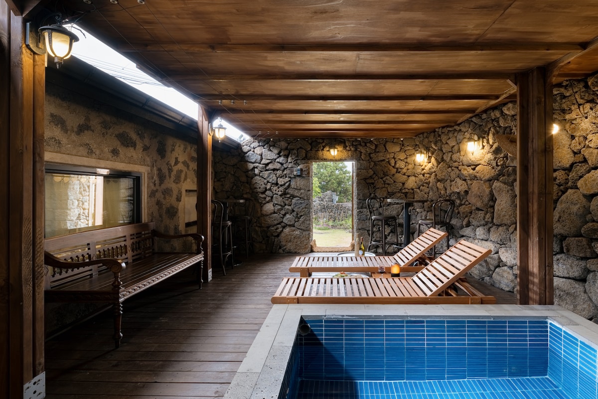 平均评分 5 分(满分 5 分),共 4 条评价특가할인/제주공항15분/대형온수풀자쿠지/돌담독채/무료바베큐/최대5인/애월&한담/대형마당