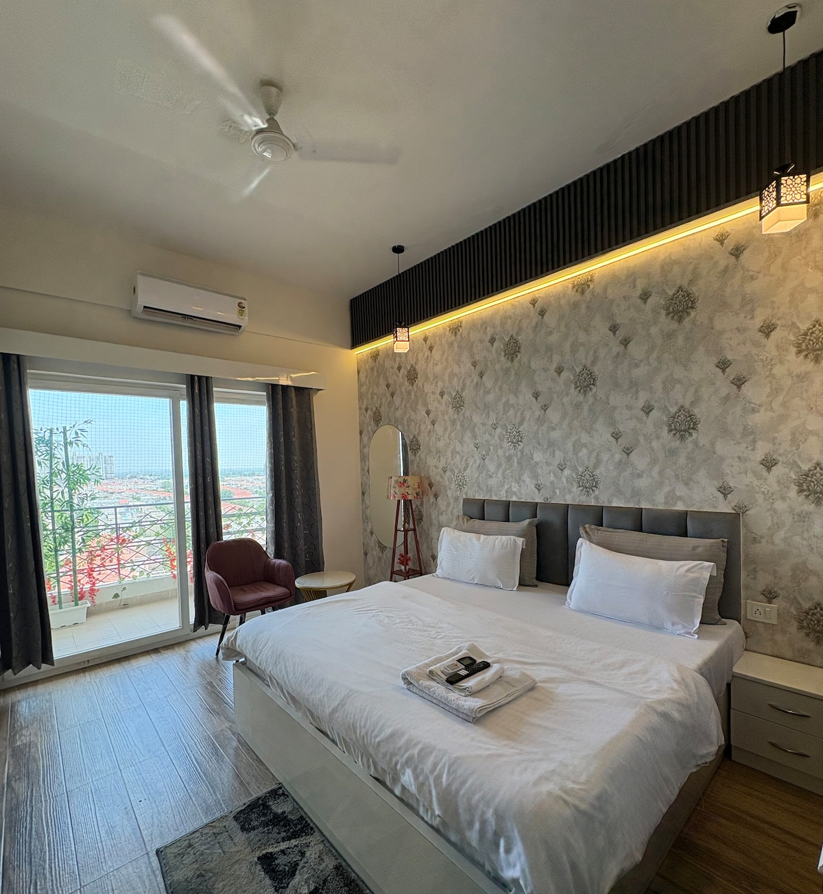 Welcome to Trovero Suites! Located in the heart of Greater Noida, Near Expo Mart (8 km) What You’ll Love: ✔ Private Balcony – Enjoy the Mesmerizing House Row view ✔ Prime Location – Close to top attractions, restaurants ✔ Modern Comfort – A beautifully furnished space with a comfy bed, cozy seating, and stylish decor ✔ Fully Equipped Kitchen – Cook your favorite meals with ease ✔ Fast WiFi & Smart TV – Stay connected and entertained. ✔ Serene Ambiance – A peaceful Luxurious and private retreat