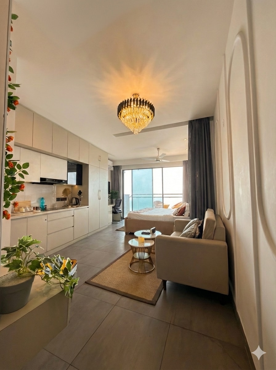 Welcome to The Beige Haven a refined luxury studio located on the 30th floor, offering a calm, elegant space with beautiful skyline views Designed in soft beige tones, this studio is perfect for guests who appreciate comfort, privacy, and a peaceful high-rise stay Large windows fill the studio with natural light, while the thoughtfully curated interiors create a warm and relaxing atmosphere. Whether you are visiting for work or leisure, this space offers the ideal blend of style and convenience