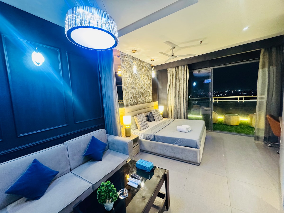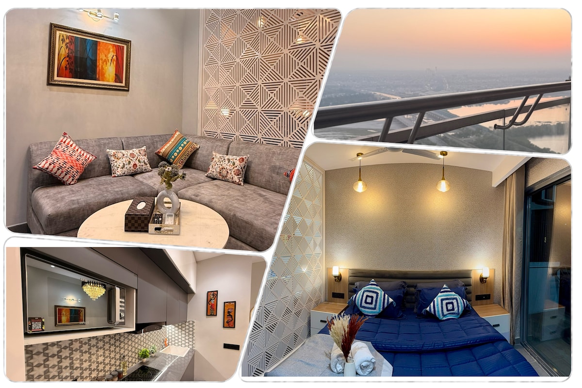 41st-Floor Ultra-Luxury Apartment | Yamuna River View • Elevated high-rise living in the tallest tower of Delhi NCR • Panoramic Yamuna river views from a premium floor • 200 Mbps high-speed Wi-Fi — ideal for remote work & long stays • Seamless food delivery (Swiggy, Zomato & more) • Easy cab access and close to key city attractions • In-complex conveniences: grocery store, salon, cafés & restaurants • Parking available outside the complex