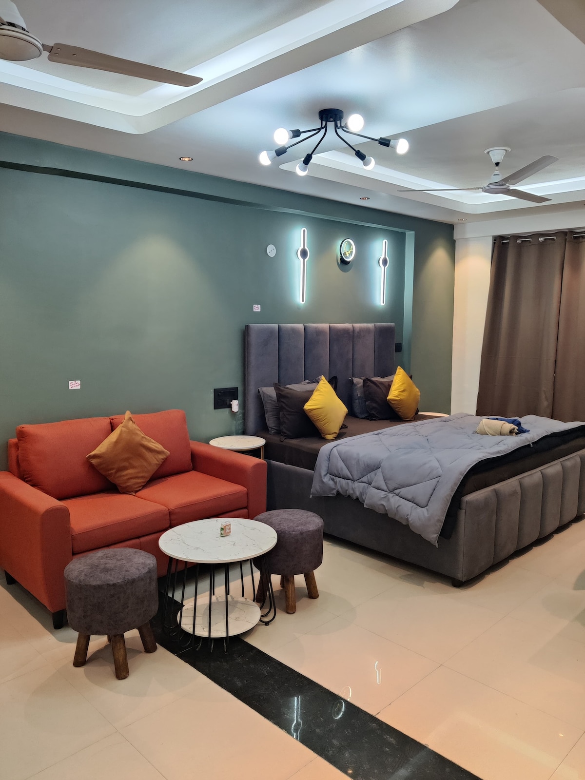 Brand New Studio Apartment! Our place is: - Family / Couple /Bachelor friendly - Fully Furnished with Brand New Equipments - Hygienic and properly sanitised. - 100m away from market with all essentials & restaurants. - Hosted by a Cool Host who is Adventurer, An Avid Traveler and Travel Brands Builder Also Includes: - Fully equipped and Functional Modular Kitchen - Water Purifier, Microwave, Induction, Kettle - High Speed Wifi - Free Parking - Power backup We welcome you to our charming Airbnb.