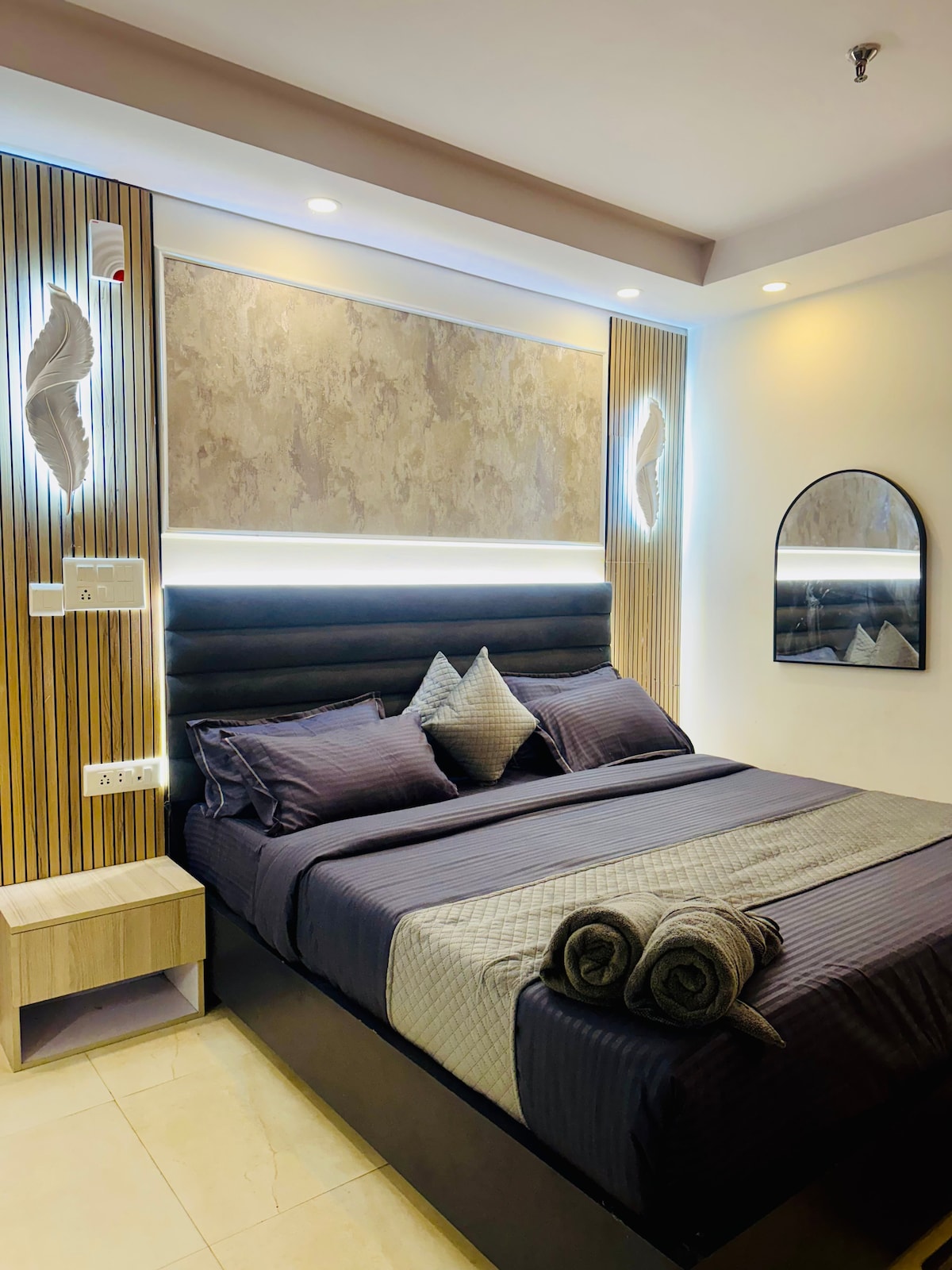 BLUO STAYS - Award winning Homes! #Staycation #CoupleGoals Awesome Designer Penthouse with private Terrace Garden having al-fresco seating, Open Shower, Bar, TT & Gym! Private Home in Sector 45 Noida, 10 min to Great India Place & Gardens Galleria - King Bed, 55" Smart TV with SoundBar, Bathroom with BathTub, Couch, Dining Table & fully equipped Kitchen plus Barbeque & Bonfire. All-inclusive Daily Rental - WiFi Internet, Netflix, Cleaning, Washing Machine, Utilities, Parking, Power Backup..