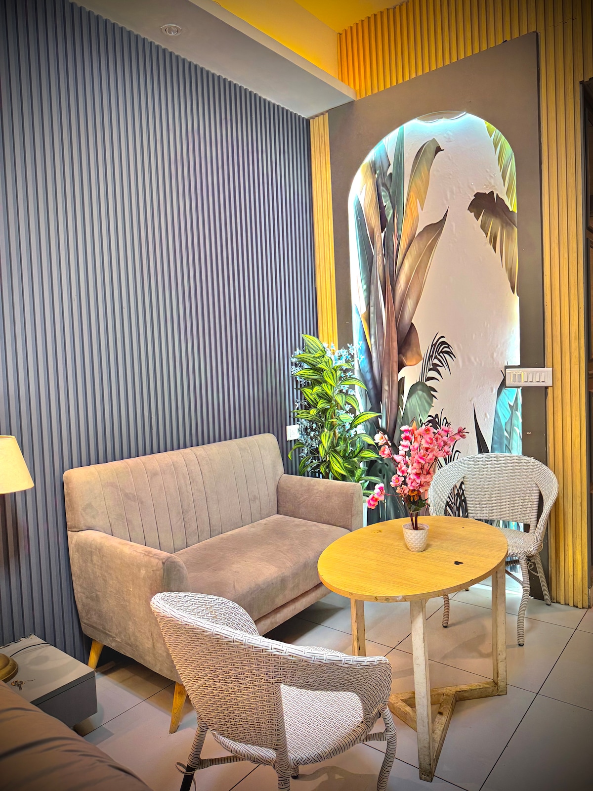 Stylish Comfort in the Heart of Rajnagar Extension A cozy, modern stay in the center of Rajnagar Extension. Enjoy easy access to shops, cafes, salons, groceries, and local food stalls — all just steps away. The fully furnished flat offers elegant decor, soft lights, and comfy furniture. Ideal for work trips, family visits, or city breaks. Feel right at home in a safe, walkable, and vibrant area with everything you need nearby.