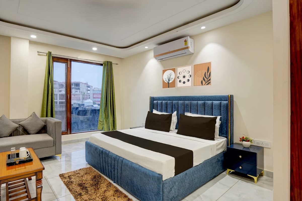 Unwind in our NCR retreat! Two spacious rooms, a fully equipped kitchen, and a sprawling 40m garden await you. Just 5 min walk to the metro, with 5 malls in 10 mins. Enjoy free parking and 24/7 security in our gated villa society. Immerse yourself in the harmonious blend of urban amenities and the soothing embrace of nature. Whether exploring the bustling city or rejuvenating in our verdant oasis, your stay promises a perfect balance of comfort and tranquility. Welcome to your peaceful escape!