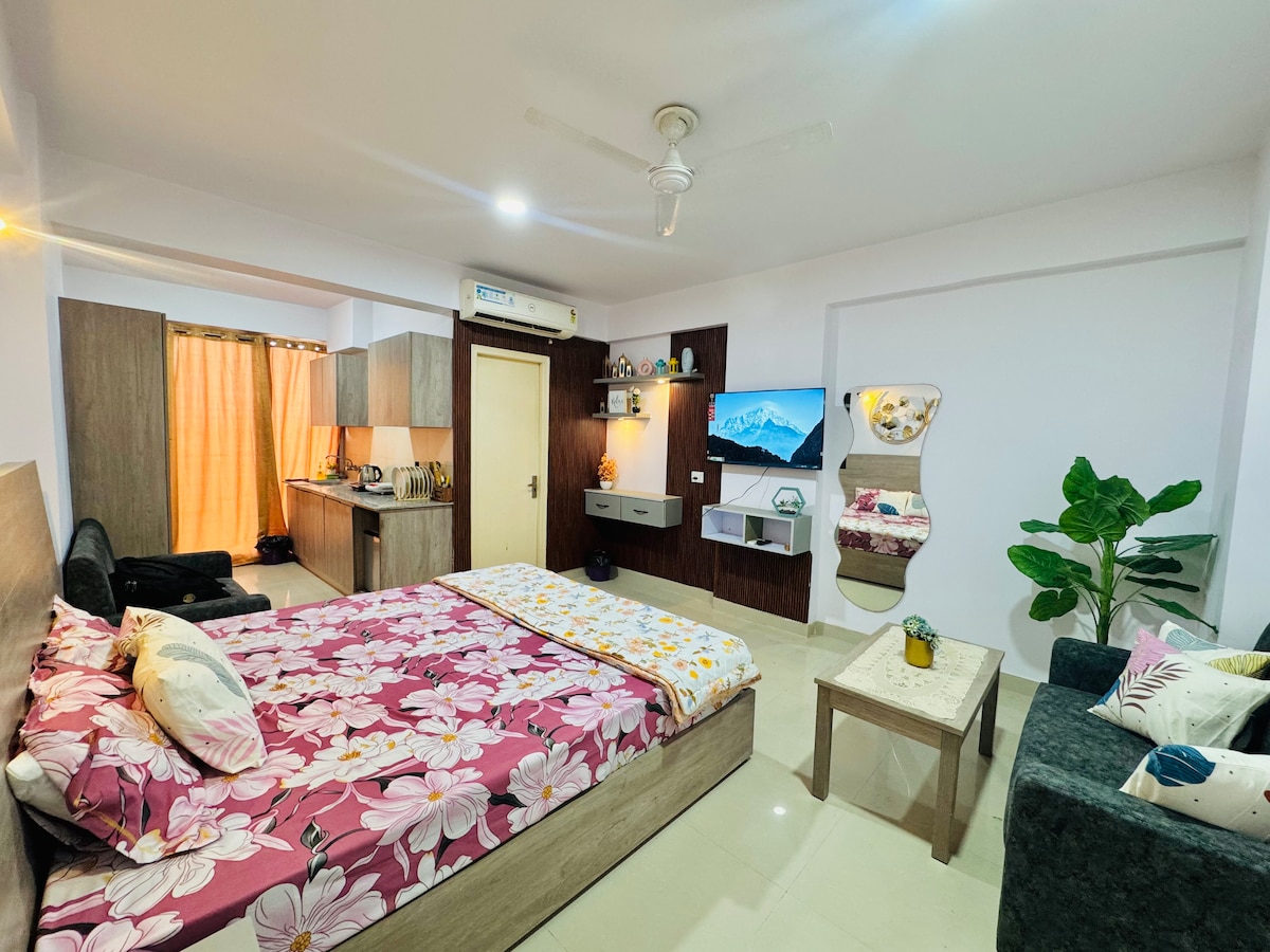 "Not Just a Stay, A Story" In the heart of Noida, Haven Hideout Studios welcomes you to our second exclusive listing. Just steps from Sector 50 Metro, this thoughtfully designed studio blends homely comfort with modern luxury. Enjoy a fully equipped kitchen, cozy lounge, scenic balcony, and all essentials for a relaxed stay. Perfect for families, couples, or solo travelers seeking privacy, convenience, and a touch of elegance in a prime location near malls, eateries, and city attractions.