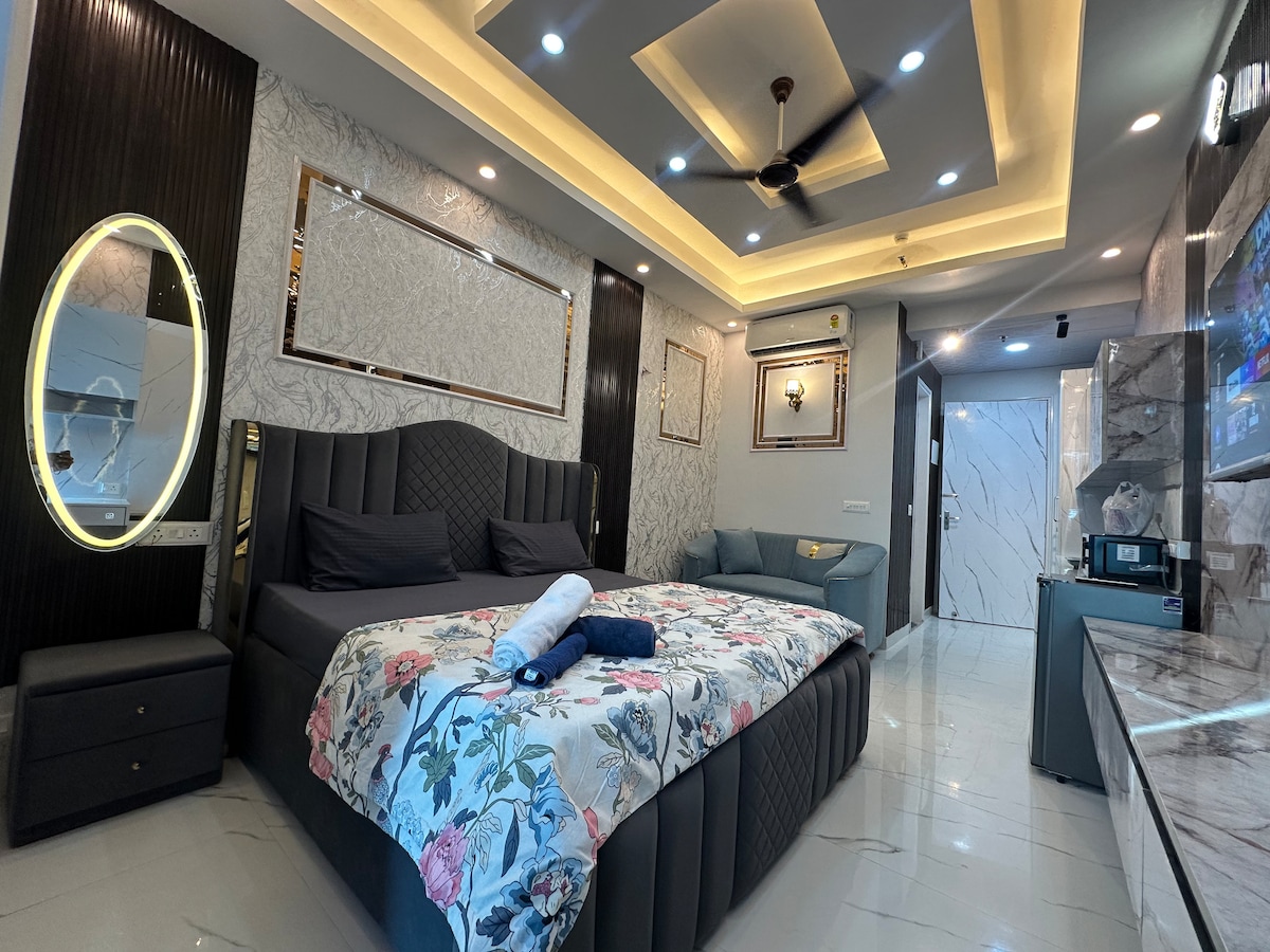 Luxury studio apartment designed for comfort, privacy, and relaxation. Featuring a private in-room jacuzzi, elegant interiors, warm lighting, and a cozy king-size bed, this space is perfect for couples, celebrations, or a peaceful city getaway. Ideal for romantic stays, birthdays, and anniversaries, the studio offers a clean, modern ambiance with essential amenities for a smooth and memorable stay. Relax, unwind, and enjoy a premium experience.