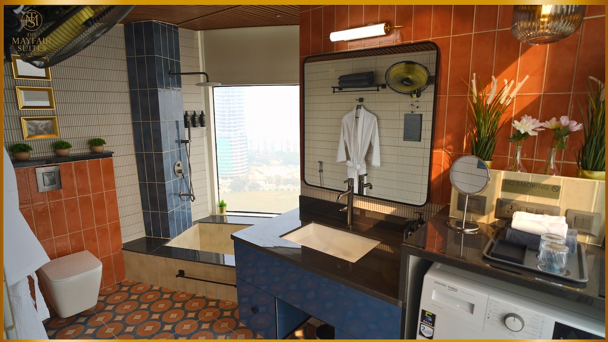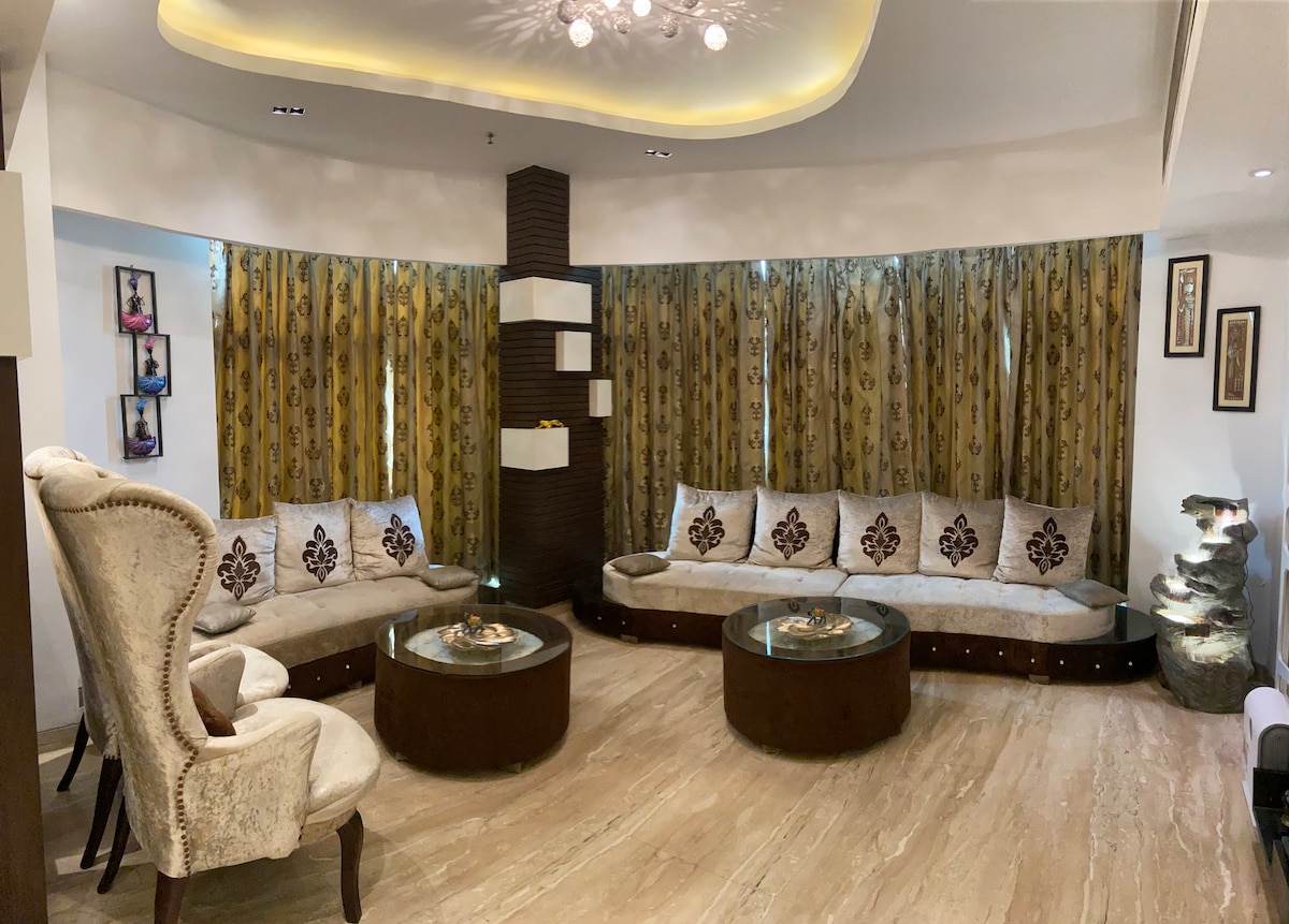 Unwind and feel peace within you at our beautiful Airbnb in the heart of Noida with a modern outdoor jacuzzi. Inside, you'll find a cozy living area, a fully equipped kitchen, and three cosy bedrooms equipped with all amenities. Whether you're relaxing on the rooftop patio or enjoying the soothing waters of jacuzzi, the House of Zen provides a peaceful and unforgettable stay. As it is centrally located all online food or grocery services work here.