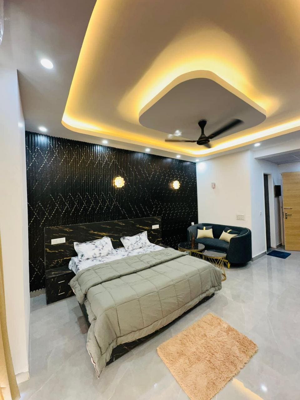 Its a Suite Room in a Boutique Hotel Royal Castle Grand C R Park. Interesting Features : -6 Feet Long Bed - 1Sofa cum Bed -65" Led Tv -500 Litres Refrigerator - 8 Sofa Seating Great for a family.