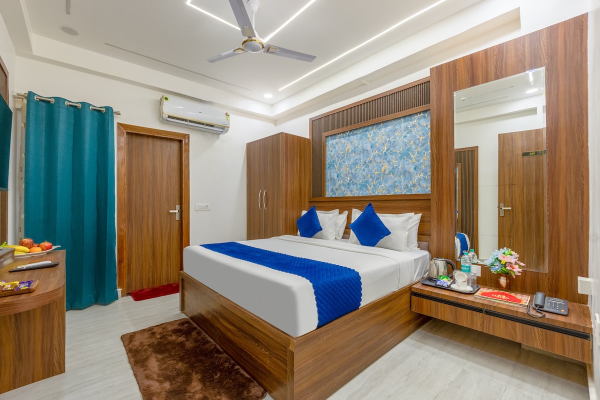 Enjoy a stay that blends modern design with cozy comfort at Sandane Homes. This designer room offers elegant interiors and thoughtful amenities—perfect for a stylish yet relaxing getaway in Greater Noida.