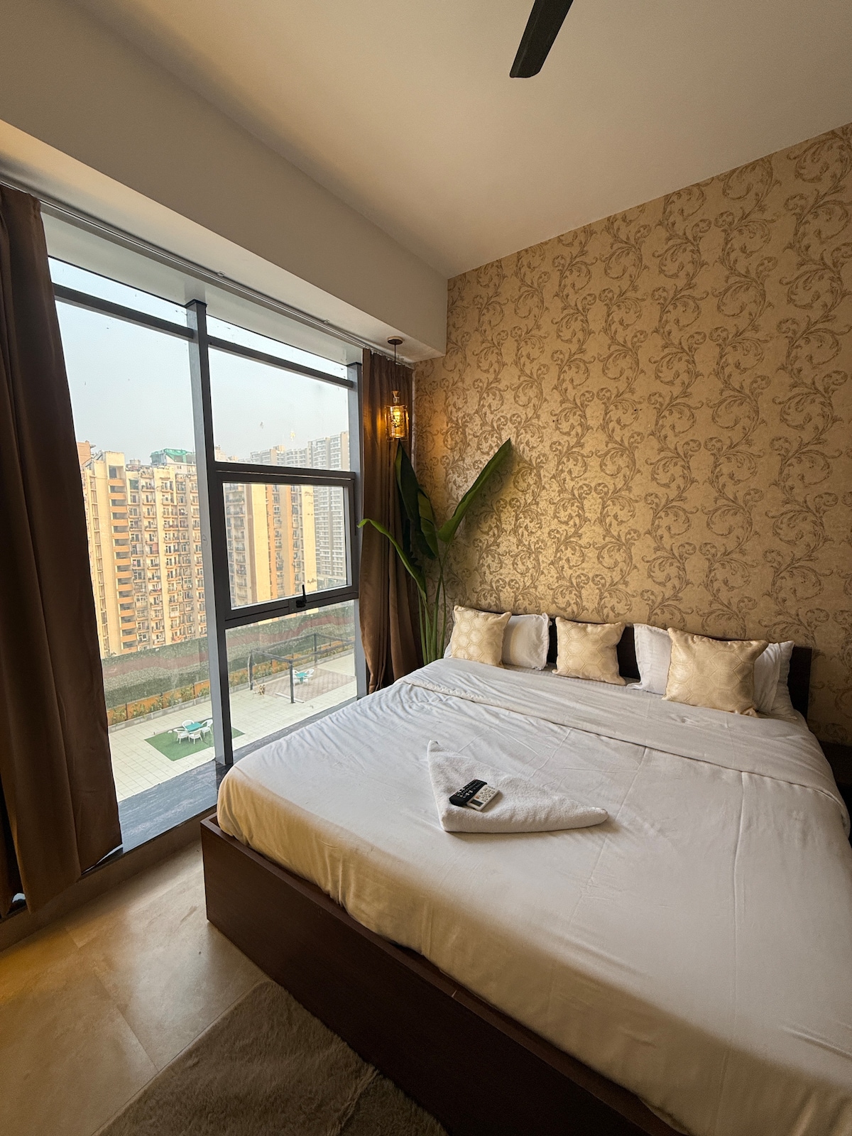 Float above the city at this peaceful, high-rise sanctuary with panoramic views of the Yamuna River and skyline. Whether you're on a romantic escape, work trip, or staycation, Cloud 33 is designed for both comfort and style. ✔ Prime Location – Only 100m from the metro for easy city access ✔ Scenic Views – Private balcony with river + skyline sunsets ✔ Ideal for Couples & Professionals – Cozy, modern, fully-equipped