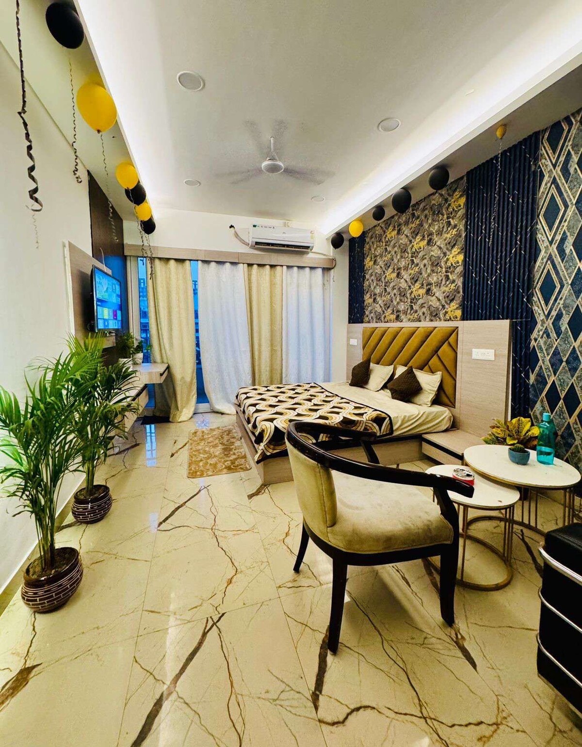 The whole group will be comfortable in this spacious and unique space. Party space , Different packages available with food and without food Gathering from 2 - 20 people possible. Park Facing property . Tables and Cutlery Available. Ideal for Batchelor Party, Birthday Party, Cocktail Party, Small Haldi Function, Anniversary Celebration. Premium Location and Well furnished space. Support Staff B block, Sector 105, Noida Near Fortune World School