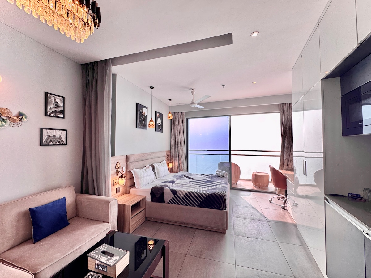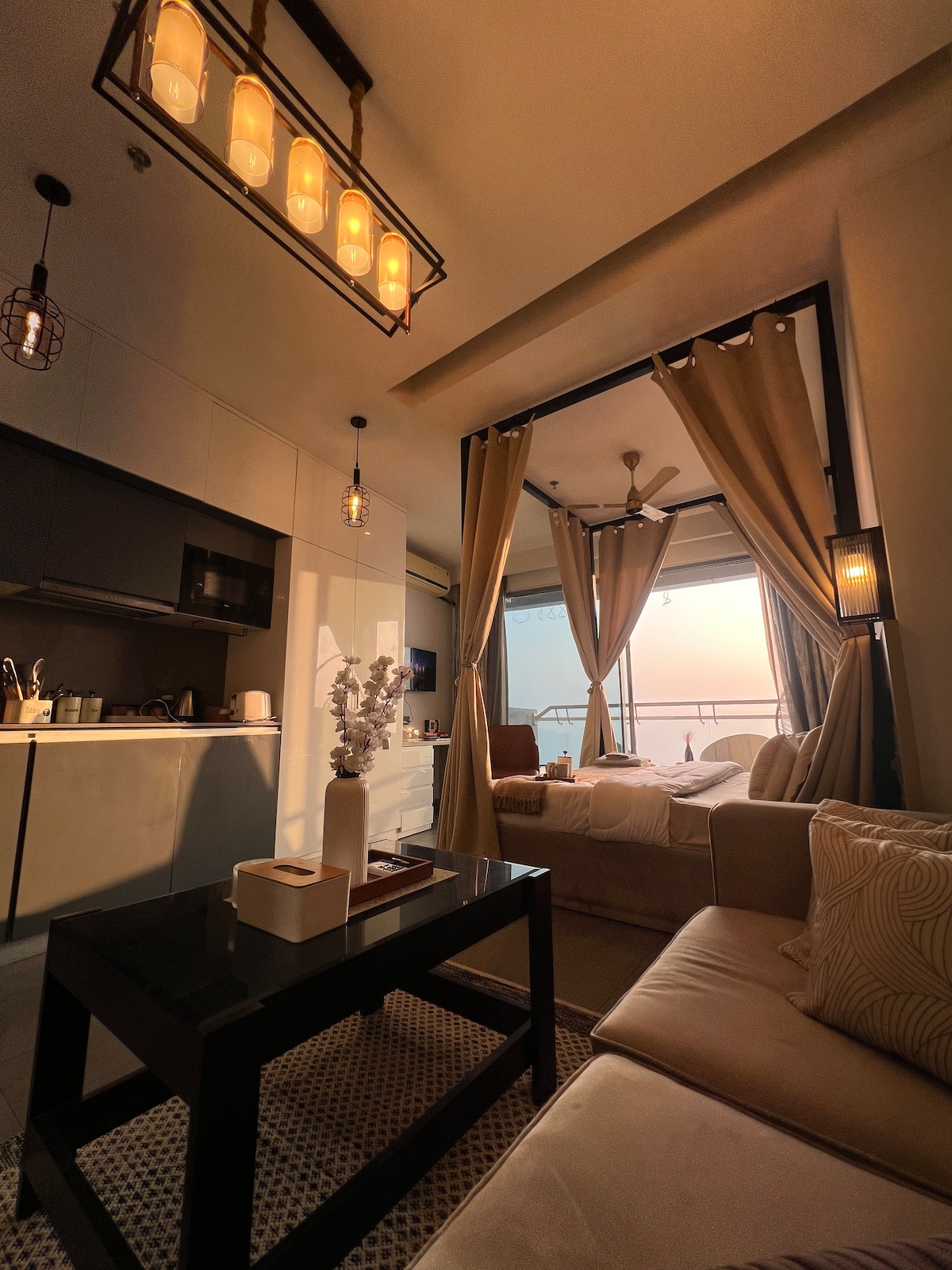 Cozy & Well-Equipped Stay with a Beautiful View “Bright, modern studio apartment designed for comfort and calm ✨ Perfect for business travelers, couples, and expo visitors. Fast Wi-Fi • Cozy interiors • Peaceful stay” With outlets like Burger King, California burrito, Dominos and Multi cuisine cafe. ❗️CHECK 4th PIC FOR DISCOUNT ❗️EARLY CHECKIN AVAILABLE
