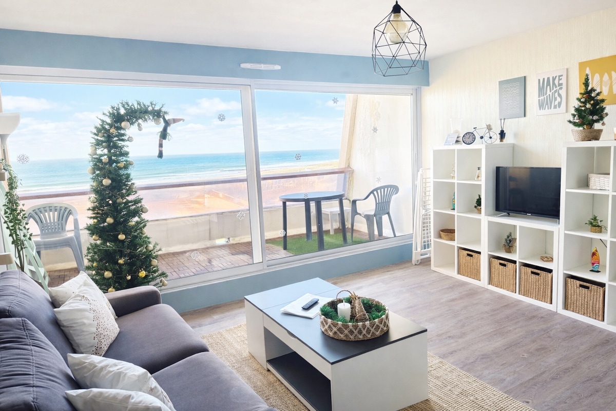 LES PLUS : Linges de lit fournis, Wifi, lave vaisselle, lave linge, serrure connectée (arrivée autonome 24/24h). Appartement de 31 m² avec terrasse de 10 m² et vue imprenable sur l’océan depuis le 3e étage. Emplacement privilégié au cœur du remblai : restaurants, bars de plage, salons de thé et snacks au pied de l’immeuble.