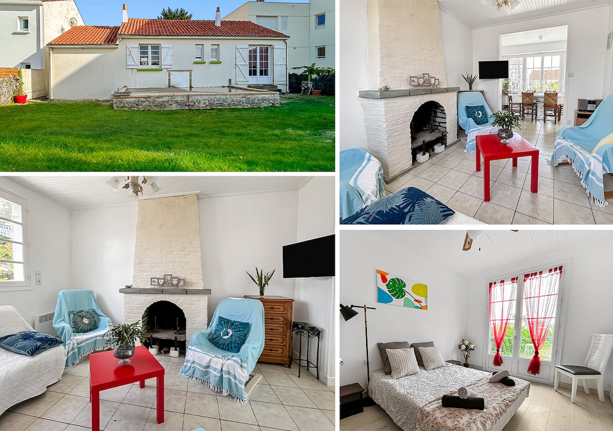 Logement classé de Tourisme Nous vous proposons une maison pleine de charme fraîchement rénovée en 2019 pour vos vacances et weekends. Elle est faite pour un séjour en famille ou entre amis. Votre animal de compagnie est aussi le bienvenu car le terrain est entièrement clos. Elle est idéalement située face à la forêt, à 300 mètres de la plage et 150 mètres des commerces. Notre Dame de Monts est à 15 km de l'île de Noirmoutier, 15 km embarcadère pour l’île d'Yeu, 30 de St Gilles Croix de Vie