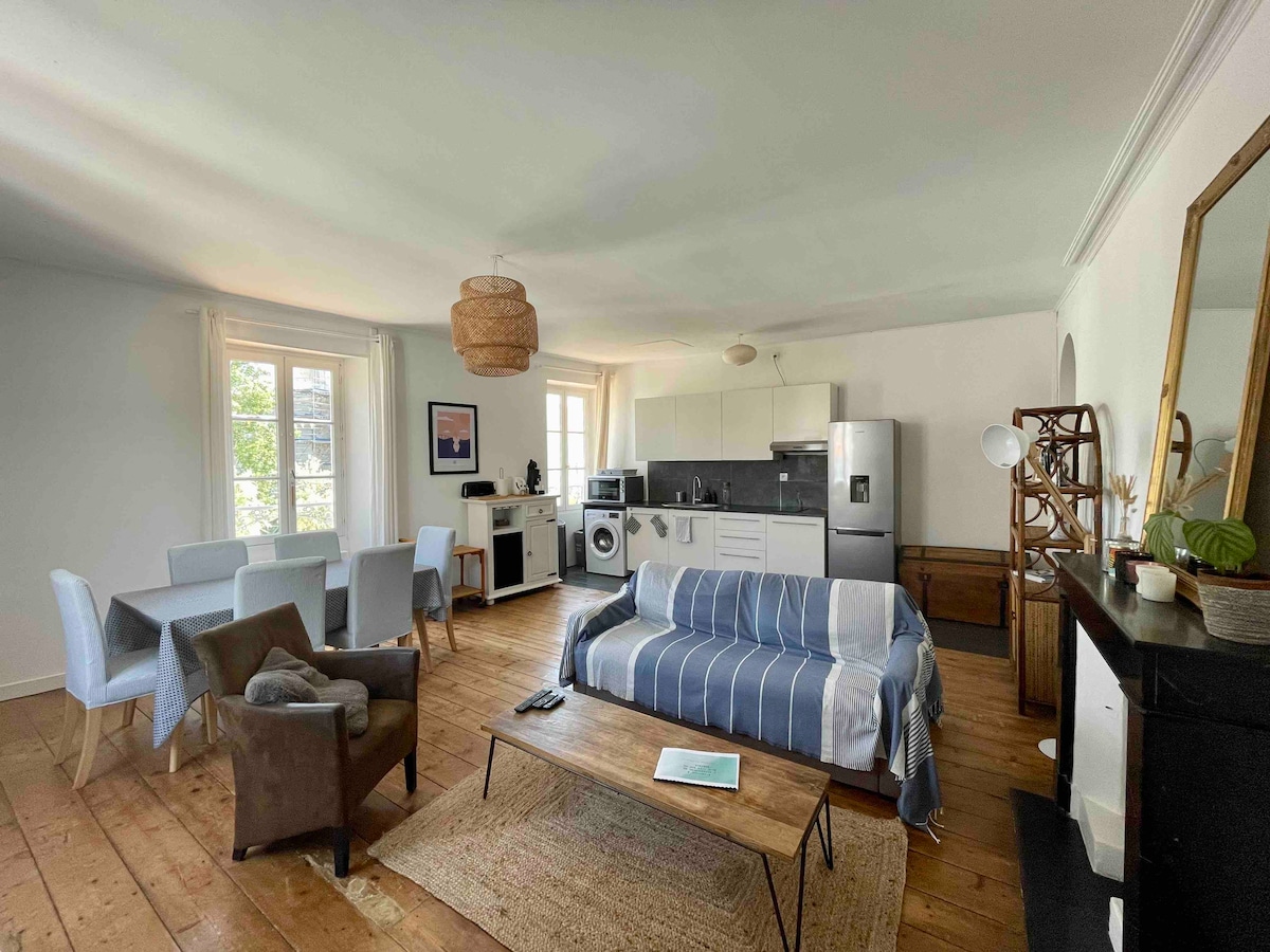 Situé dans le centre ville de Noirmoutier, au premier étage d'un tout nouveau lieu de vie, le Blue, café restaurant ouvert seulement en journée ! A deux pas de l'église, venez profiter de cet agréable appartement et sa superbe vue sur le Château de Noirmoutier ! L’appartement est parfait pour accueillir deux personnes, voire 4 grâce au canapé lit dans le salon.