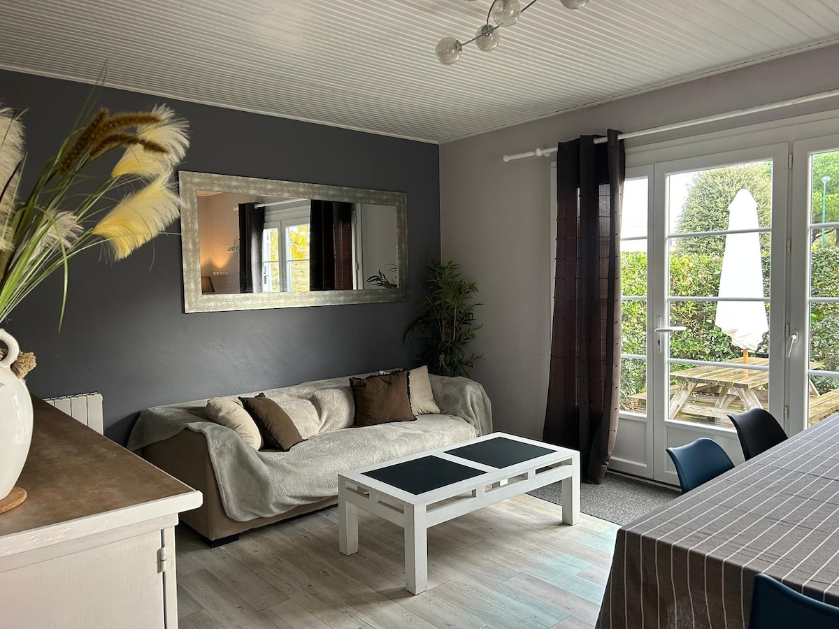 Jolie petite maison de plein pied située à 500 m centre ville et2000m de la plage des Sableaux . Elle se compose d'un séjour/salon avec cuisine aménagée, un canapé lit 2 personnes , une TV. Une chambre avec lit double , une salle d'eau, WC séparés . Vous bénéficiez d'une cour fermée avec terrasse sans vis à vis, un salon de jardin , 2 Acapulco , un barbecue. Une place de parking privé devant la location. Sa situation exceptionnelle vous permet d'accéder à pied en 5 min au centre ville .